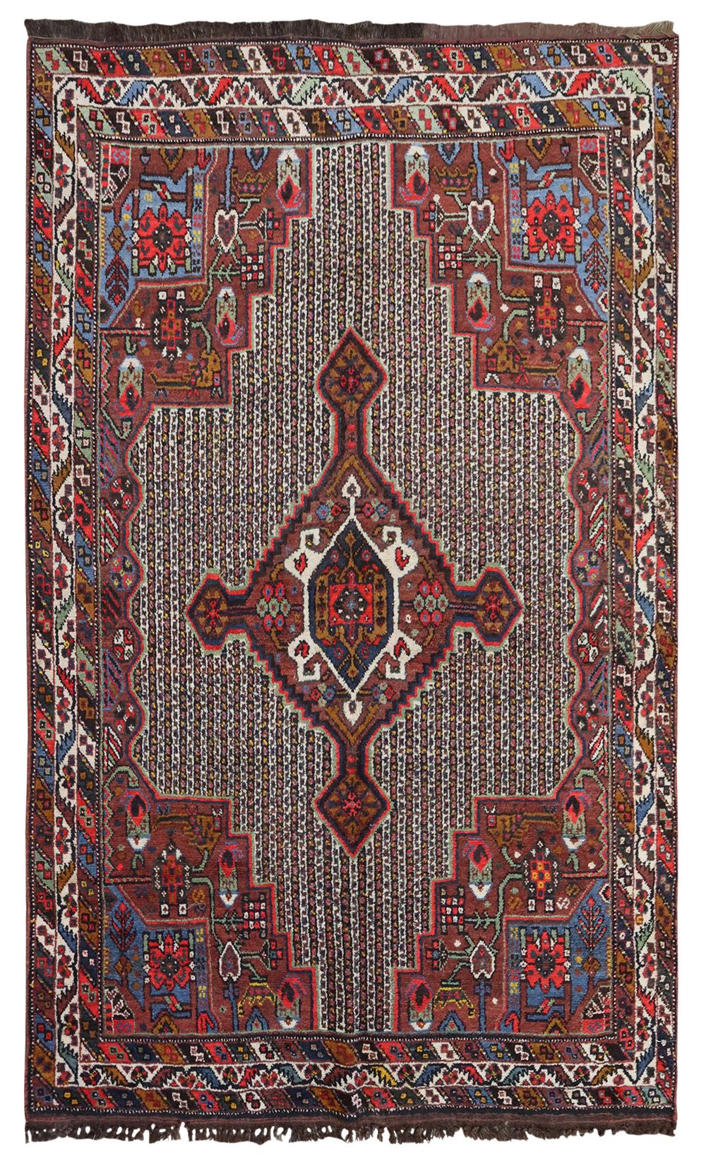Elevate your room’s style with our Antique Qashqai Handwoven Tribal Rug (JF8572). The tribal Nomadic Persian & Turkish style, with its Qashqai motif, is definitely a stunner that you’ll be proud to show off in your home. Its distinctive purple, aubergine and pink palette will add charm, elegance, and that little bit of that ever-elusive je ne sais quoi. Plus, the wool pile on a wool foundation used in this 4' 6" X 6' 6" rug accentuates its allure. But, this rug isn’t just worthy of gracing the pages of a design magazine. With its masterful Persian handwoven construction, this antique rug from around 1925 will be a prized possession for decades to come. Get your own show-stopping Antique Qashqai Handwoven Tribal Rug today!