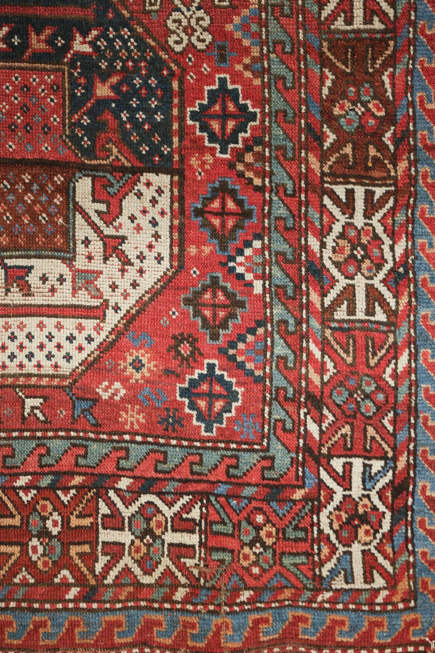 Antique 1860 Turkmen Tribal Persian Quchan Kurd 4' 0" X 6' 5" Red Rug