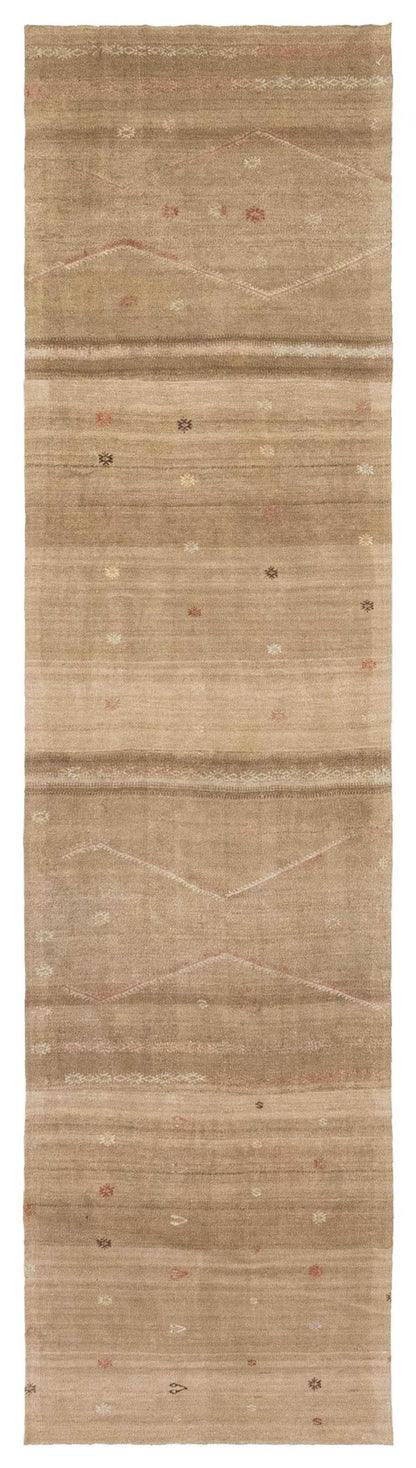 Vintage 1960 Modern Flatweave Contemporary Turkish Rag Rug 2' 5" X 9' 4" Brown Rug
