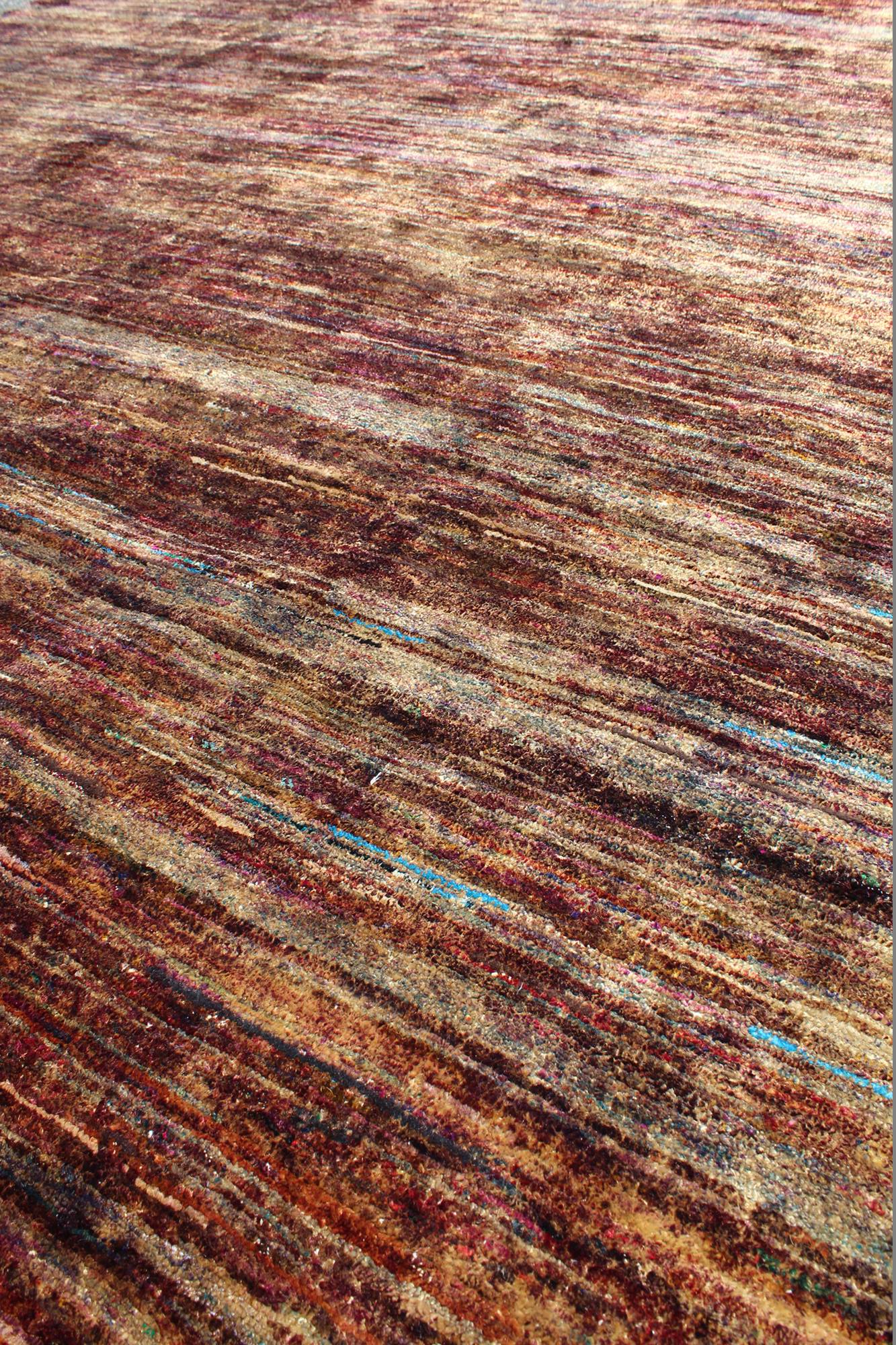Make a grand statement in your home with our stunning Rainbow Handwoven Closeout Rug (J44903). This contemporary handwoven Indian rug has an alluring Textural style with its Rainbow design in rich hues of brown, chocolate and ivory. Sari Silk pile on a cotton foundation make this new rug both sturdy and comfortable to the touch. At 7' 10" X 9' 9" in size, this rug will add just the right amount of pizzazz to any room. All in, you’ll be loving this rug today, tomorrow, and beyond. So, go ahead — get your Rainbow Handwoven Closeout Rug today!