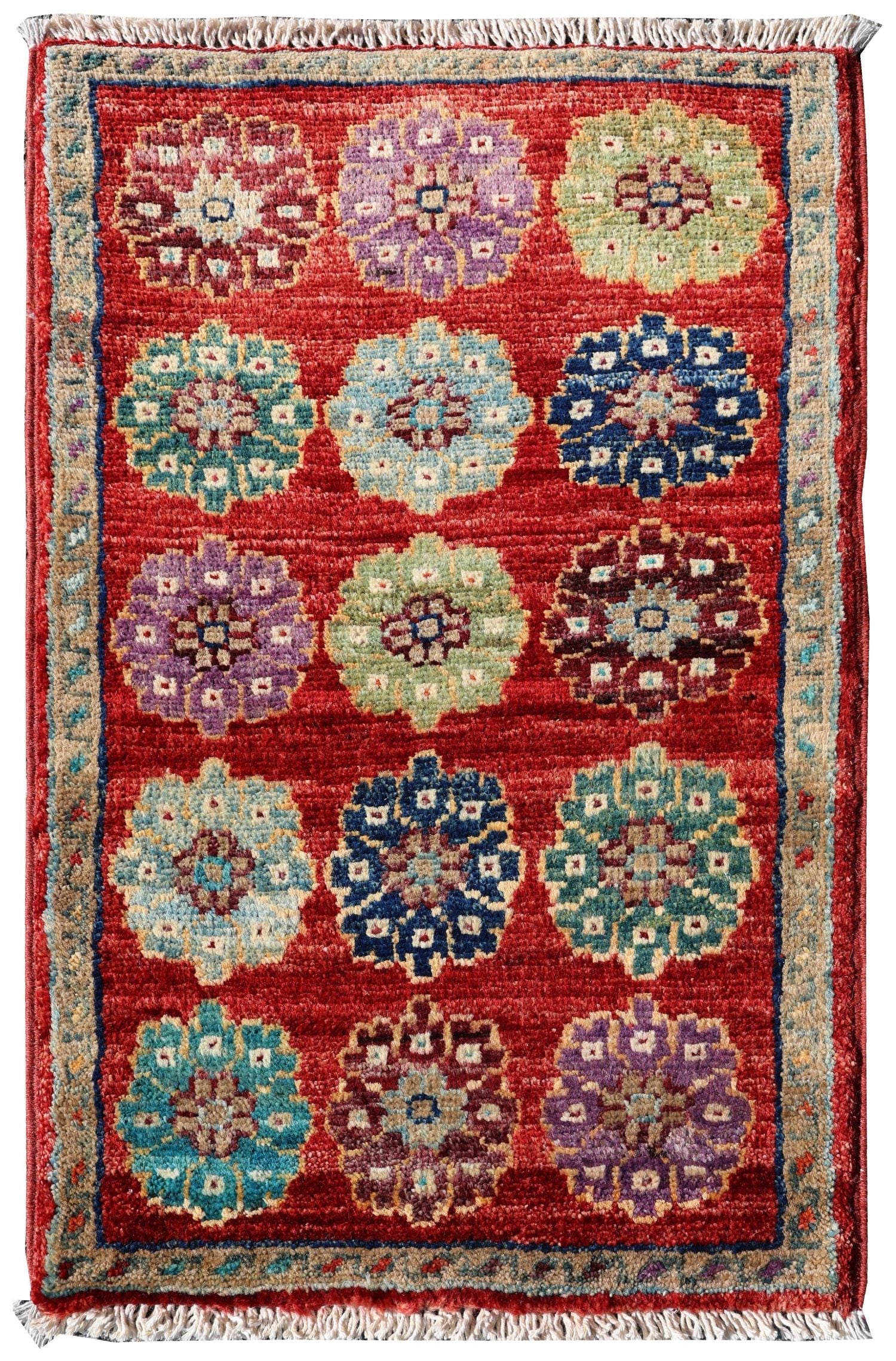 New Nomadic Persian & Turkish Tribal Afghani Reza 1' 4" X 2' 1" Red Rug