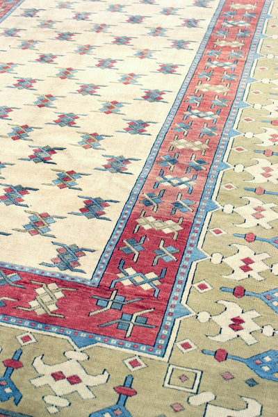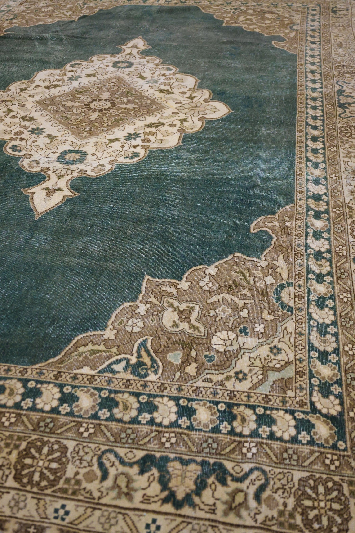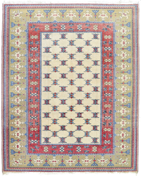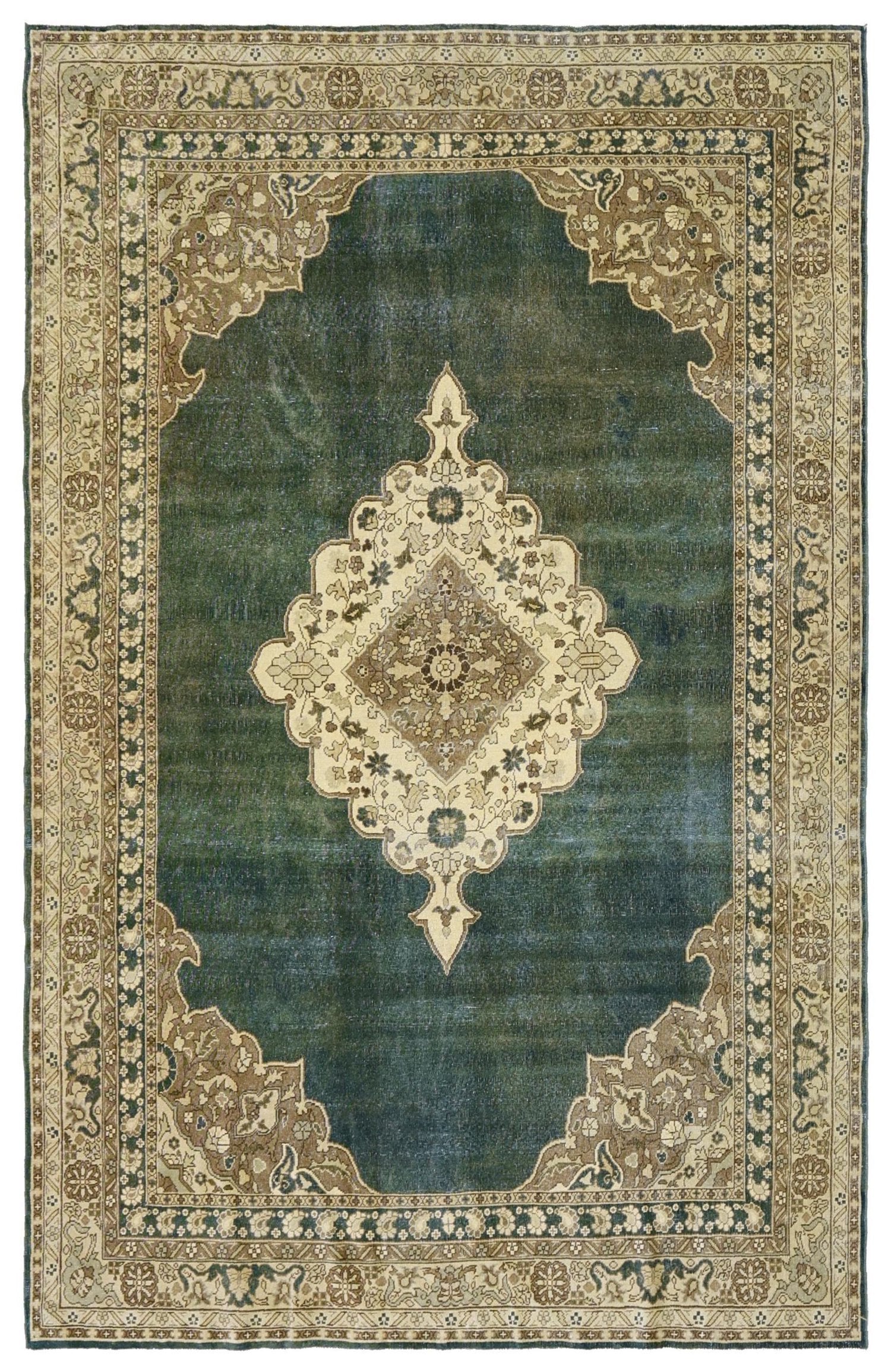 Vintage 1940 Formal Classic Persian Traditional Romanian Romanian 6' 11" X 10' 7" Green Rug