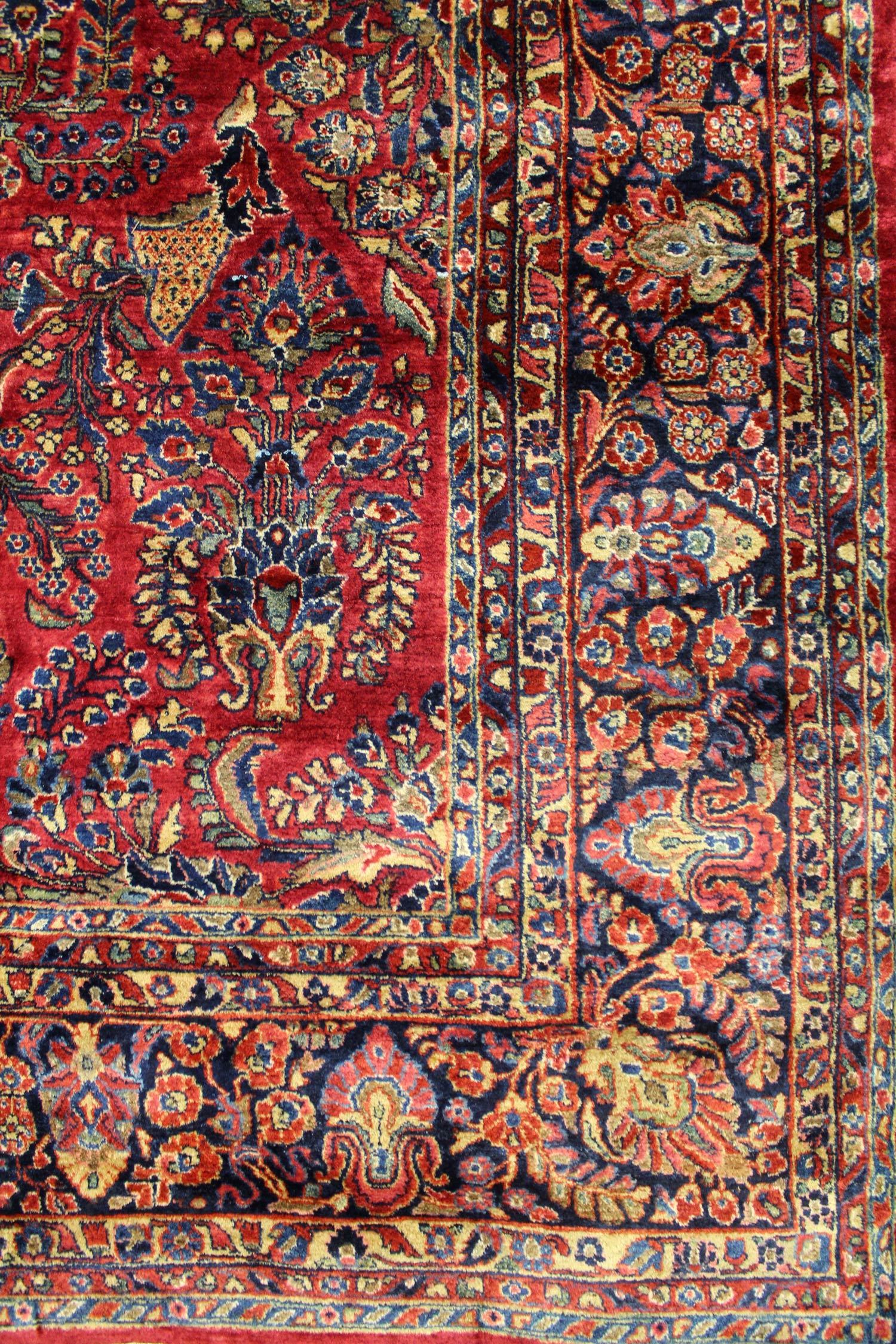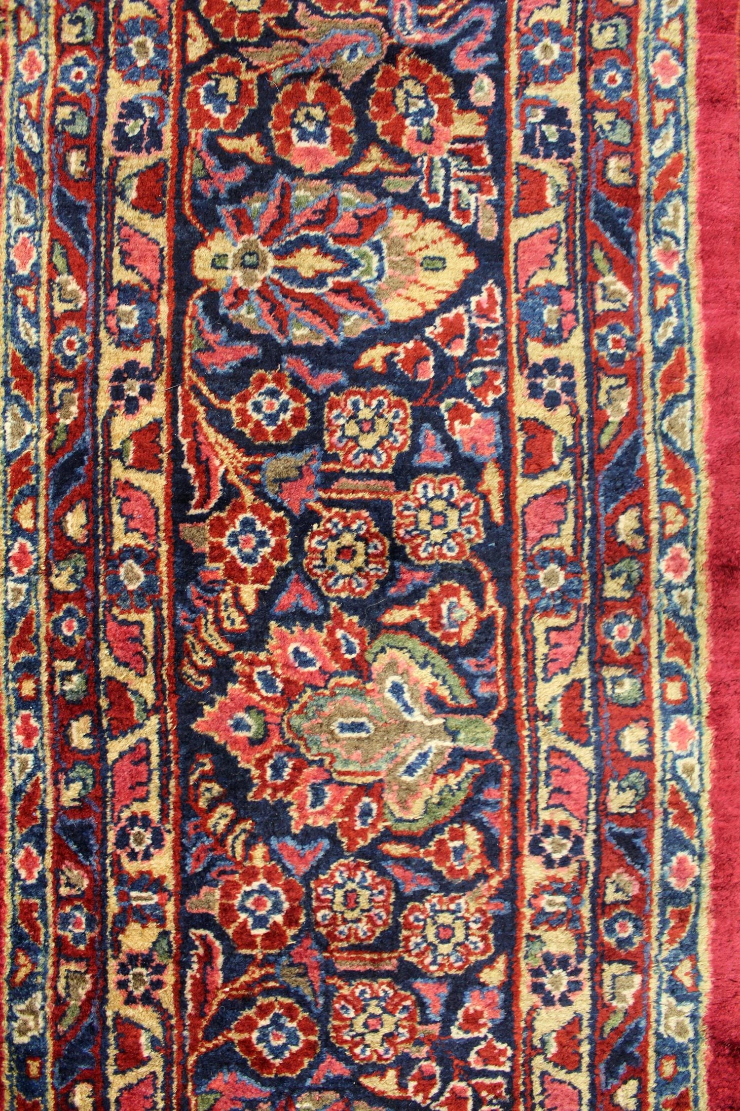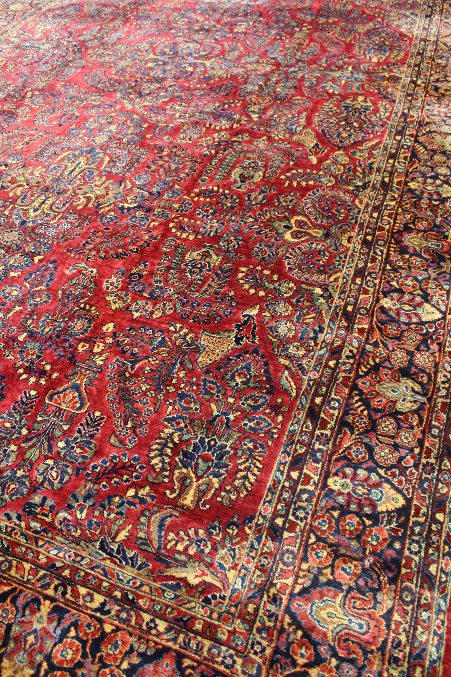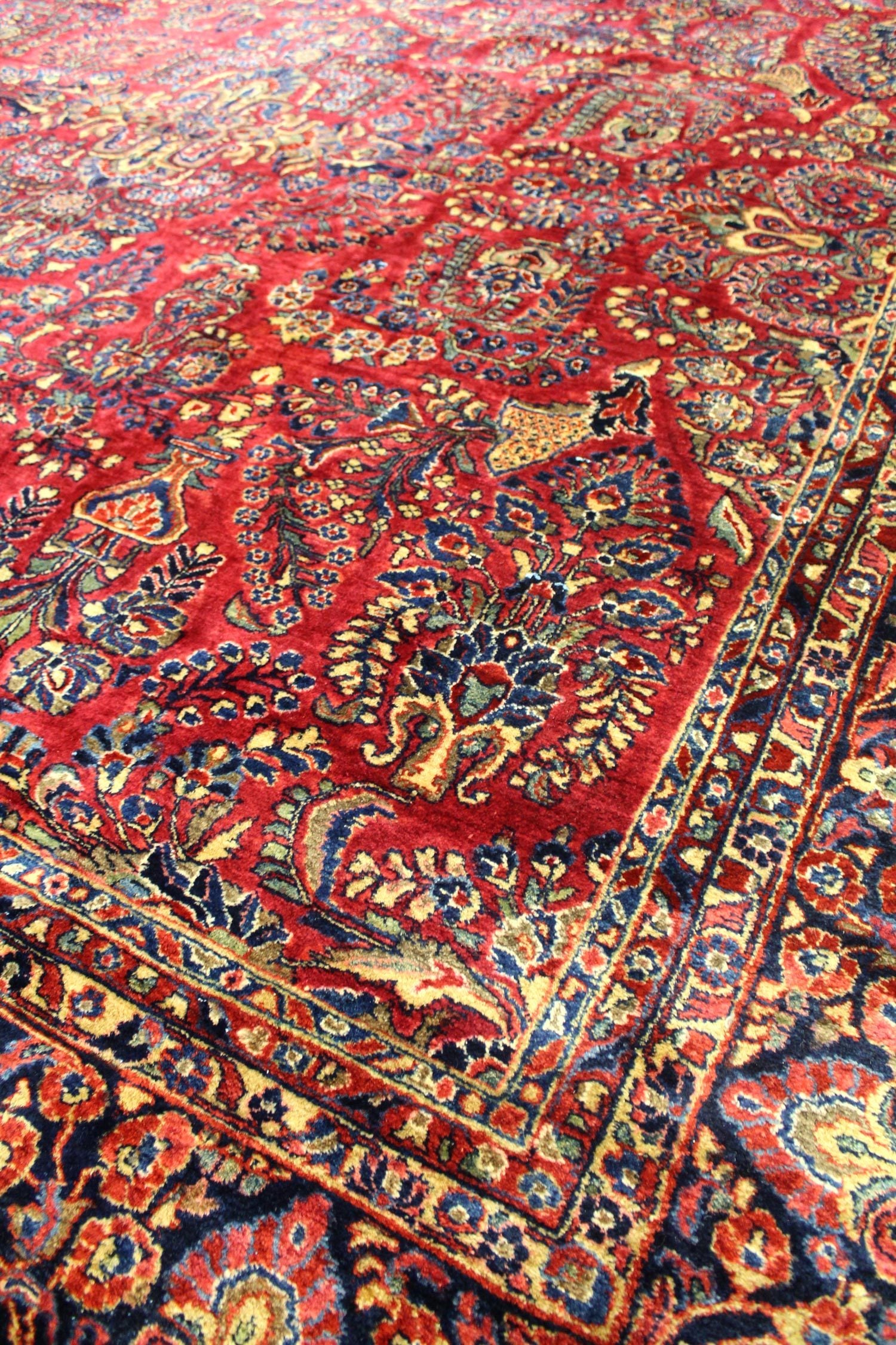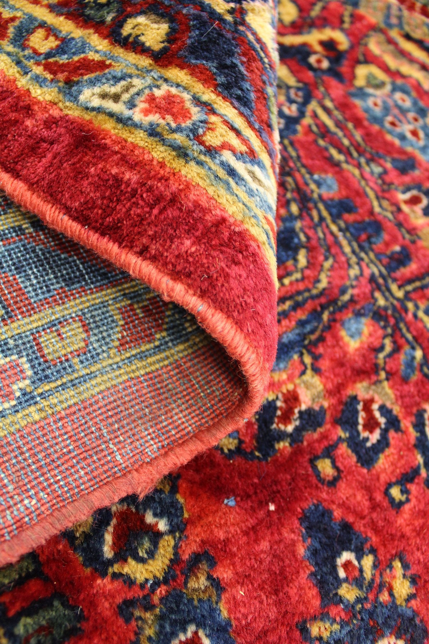 Looking to take your home’s interior design up a notch (or several)? Nothing does it better than a striking statement piece — such as our luxurious Antique Sarouk Handwoven Traditional Rug (J62863). This 11' 10" X 20' 2" traditional Formal Classic Persian rug has a Sarouk design in red and navy. Constructed of wool pile on a cotton foundation, you know that this rug not only looks great but feels nice and will stand the tests of time and traffic. Quality and style are hallmarks of antique handwoven Persian rugs — so you’ll be admiring this one for years to come! All you have to do is claim your Antique Sarouk Handwoven Traditional Rug today.