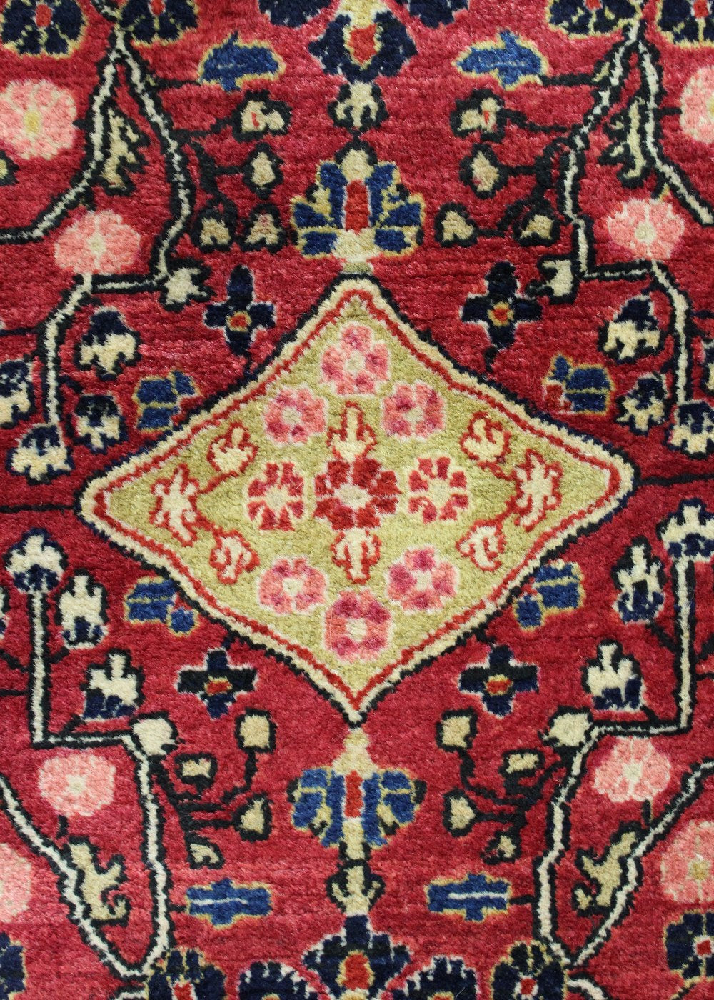 Sarouk rugs from this period are celebrated for their thick, luxurious pile, which not only enhances the durability of the rug but also imparts a soft, velvety texture. The high-quality wool used in their construction ensures that these rugs are not only visually striking but also long-lasting.