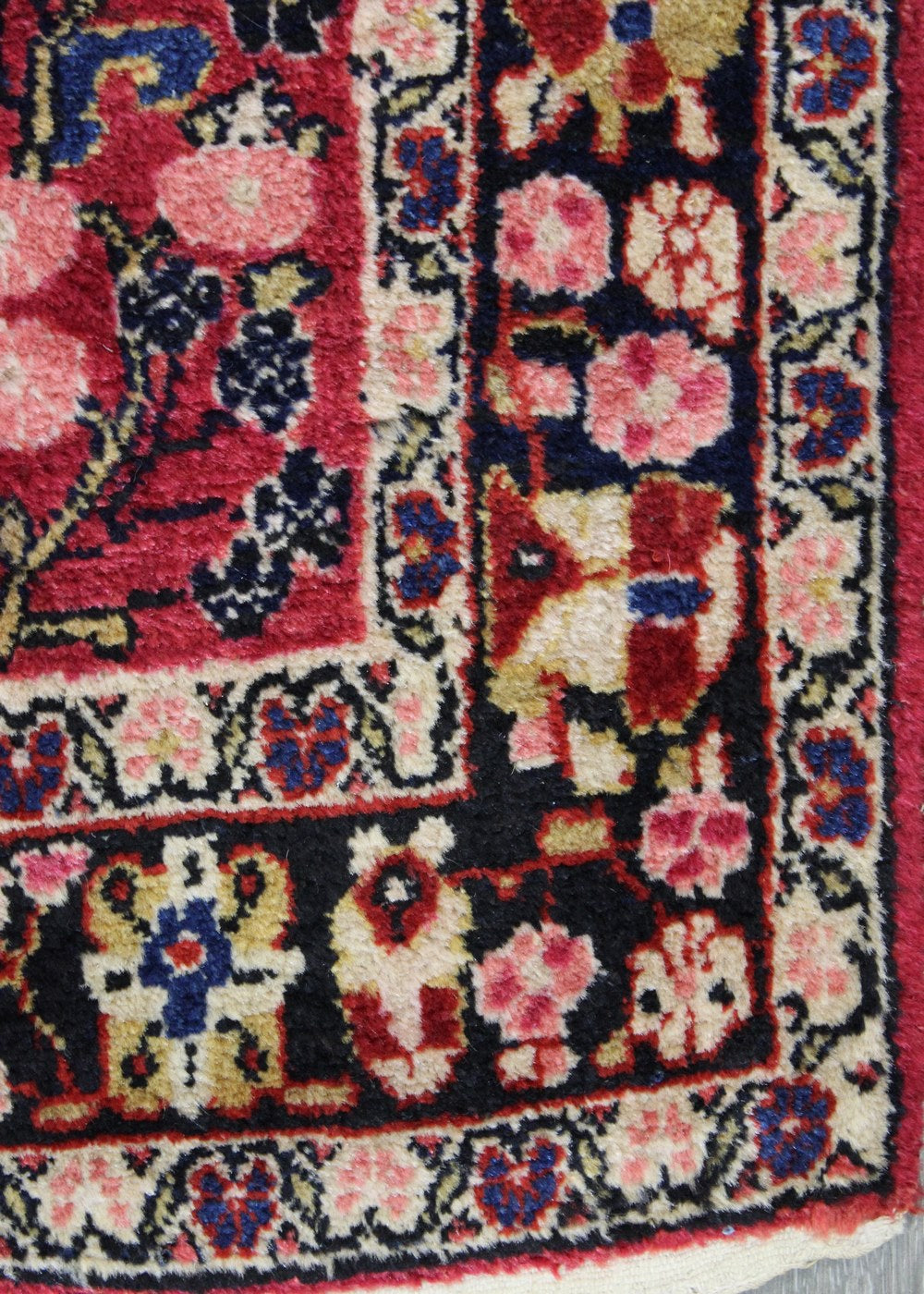 This antique Persian Sarouk rug remains a testament to the enduring appeal and intricate beauty of traditional Persian rugs, maintaining its valued status in both collectible markets and home décor.
