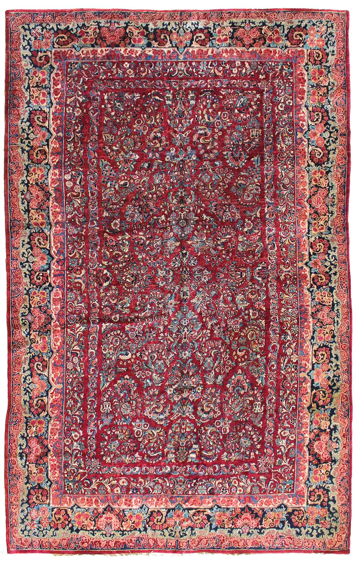 Make your house truly feel like home with our Antique Sarouk Handwoven Traditional Rug (JF2988). It's antique (circa 1930) and traditional. It’s red with navy accent colors. It’s a Formal Classic Persian style rug with a Sarouk motif. All things you gravitate towards when it comes to aesthetics and design in your space. Being a 10' 4" X 16' 6" rug of wool pile on a cotton foundation, you can rest assured that this piece will do more than just make the visual impact and create the vibe you want. It comes from the fine Persian tradition of handwoven rugmaking, meaning this rug will serve you well and look terrific for years. Add that extra special personal touch today with your own Antique Sarouk Handwoven Traditional Rug.
