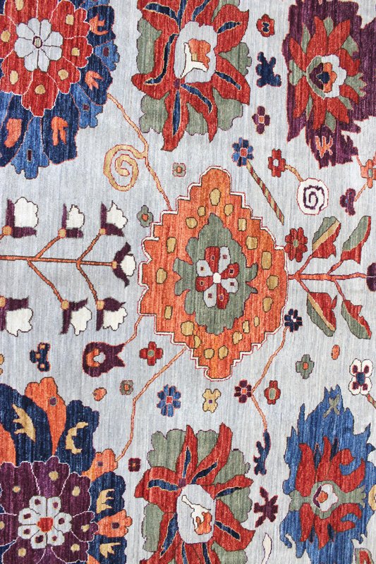 Measuring 11'10" x 11'11", this remarkable rug showcases 80 knots per square inch. By calculating the KPSI, we estimated that this rug boasts an impressive total of 1,604,832 individually hand-tied knots, a testament to the meticulous craftsmanship and attention to detail poured into its creation.