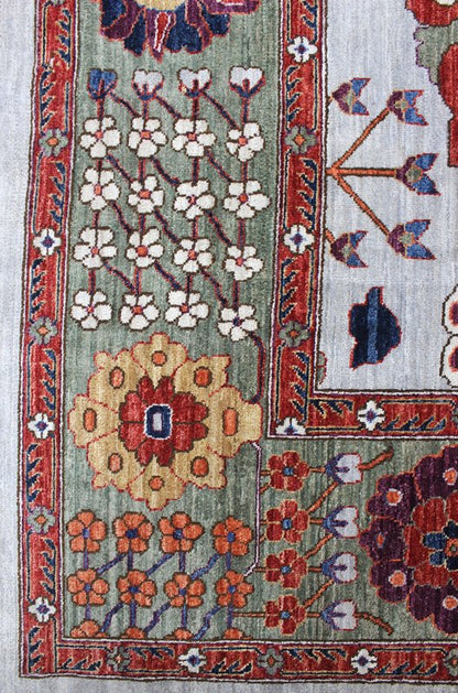 Adding to its allure, this rug is adorned with centuries-old all-natural dye stuffs, ensuring a captivating and authentic color palette. The dedication to using only the finest materials and traditional weaving methods contributes to the rug's undeniable beauty and story.