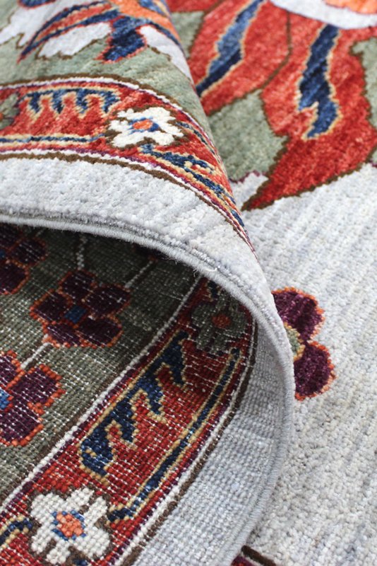 Most of these rugs are woven in Aqucha and Mazar Sharif, utilizing a 2-ply yarn per knot technique, which enhances the rug's overall strength and longevity.