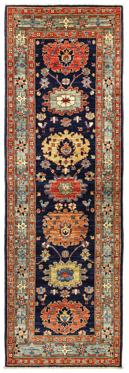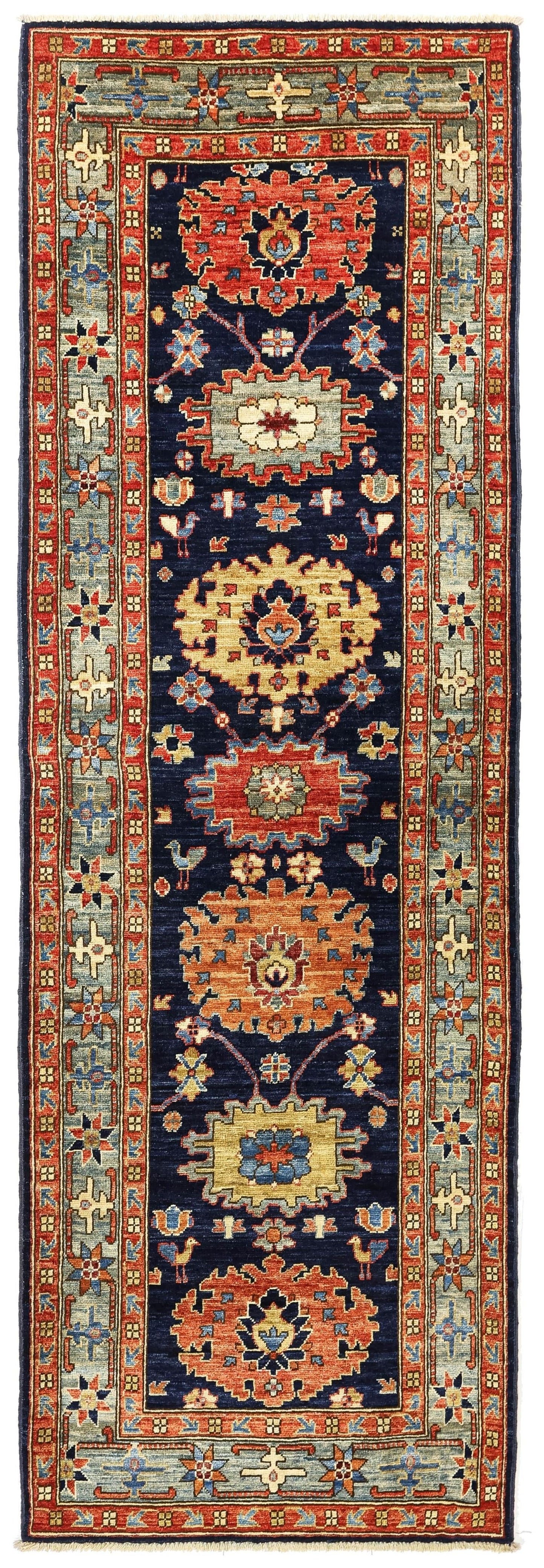 New Tribal Afghani Sauj Balugh 2' 7" X 7' 10" Blue Rug
