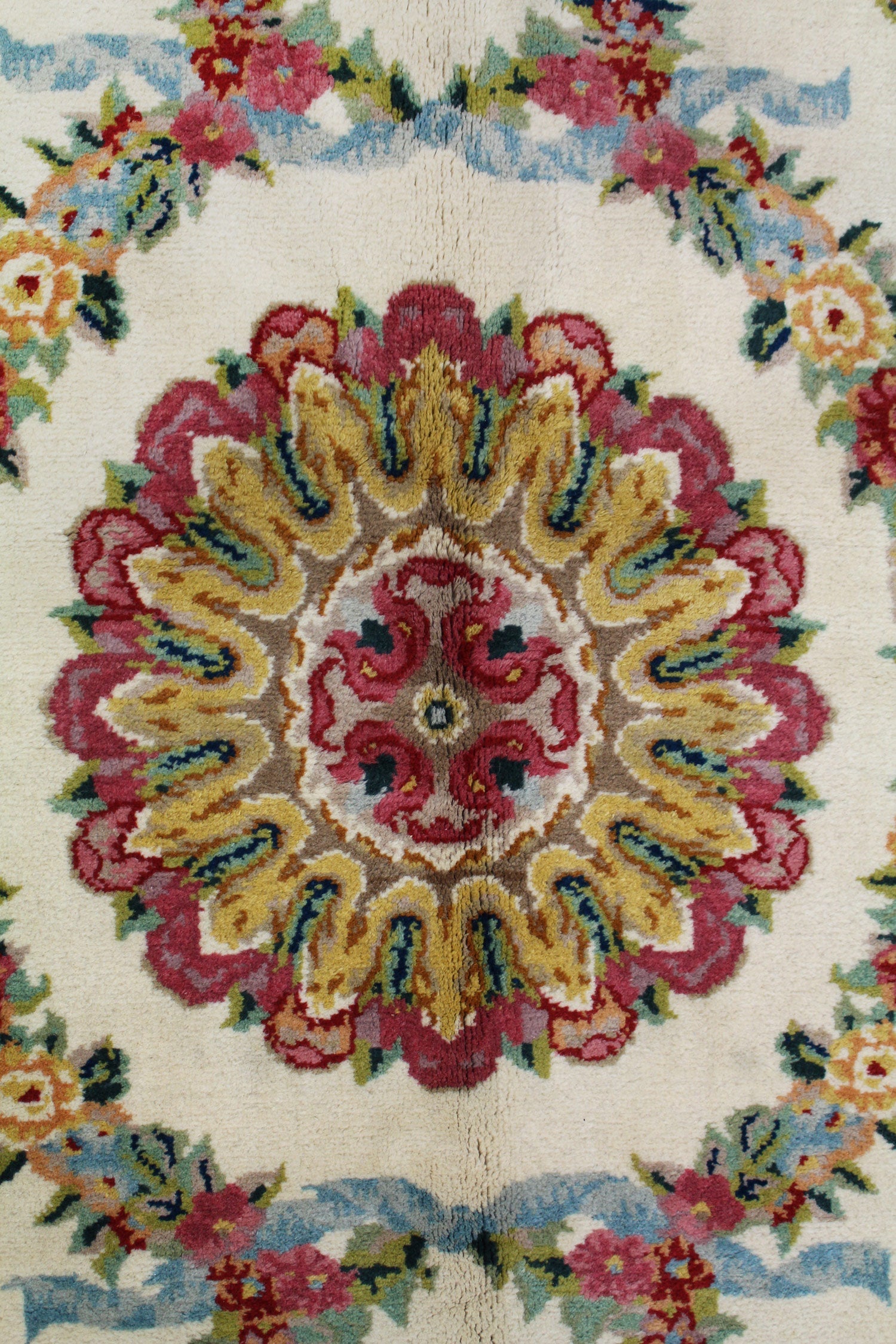 Vintage Savonnerie Handwoven Traditional Rug, J63647