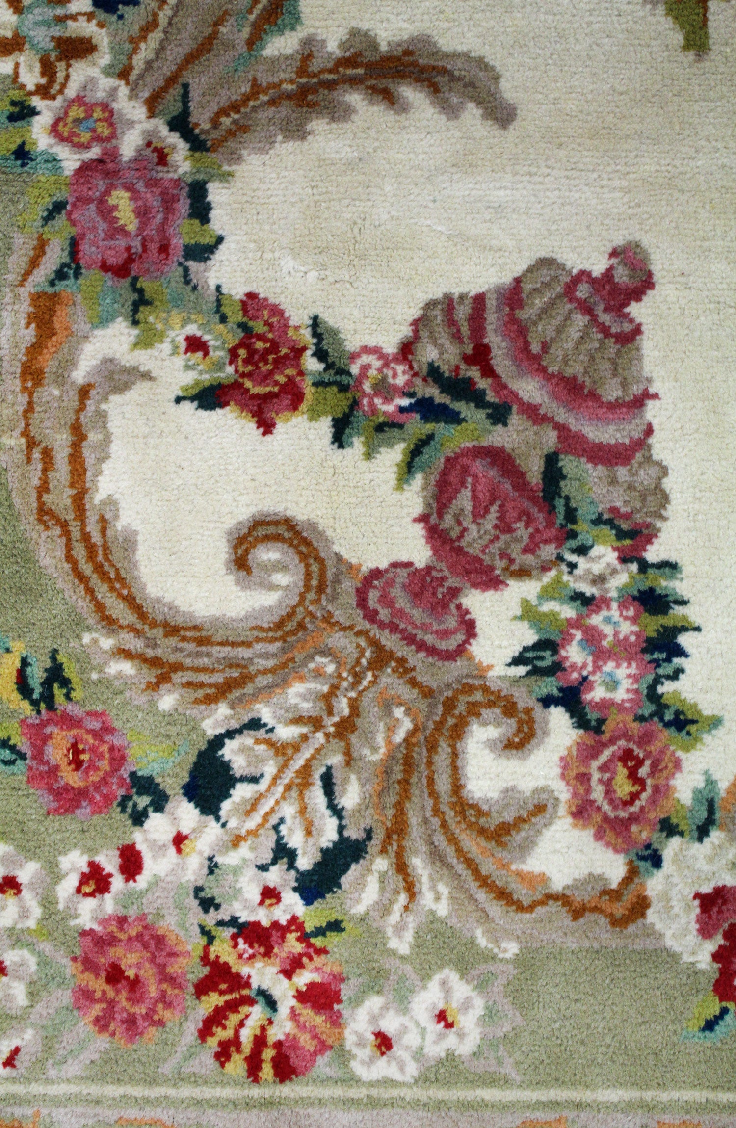 Looking to take your home’s interior design up a notch (or several)? Nothing does it better than a striking statement piece — such as our luxurious Vintage Savonnerie Handwoven Traditional Rug (J63647). This 9' 9" X 12' 2" traditional European rug has a Savonnerie design in green, ivory and moss. Constructed of wool pile on a wool foundation, you know that this rug not only looks great but feels nice and will stand the tests of time and traffic. Quality and style are hallmarks of vintage handwoven Romanian rugs — so you’ll be admiring this one for years to come! All you have to do is claim your Vintage Savonnerie Handwoven Traditional Rug today.