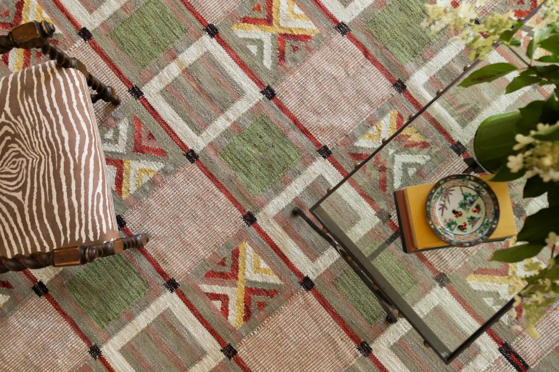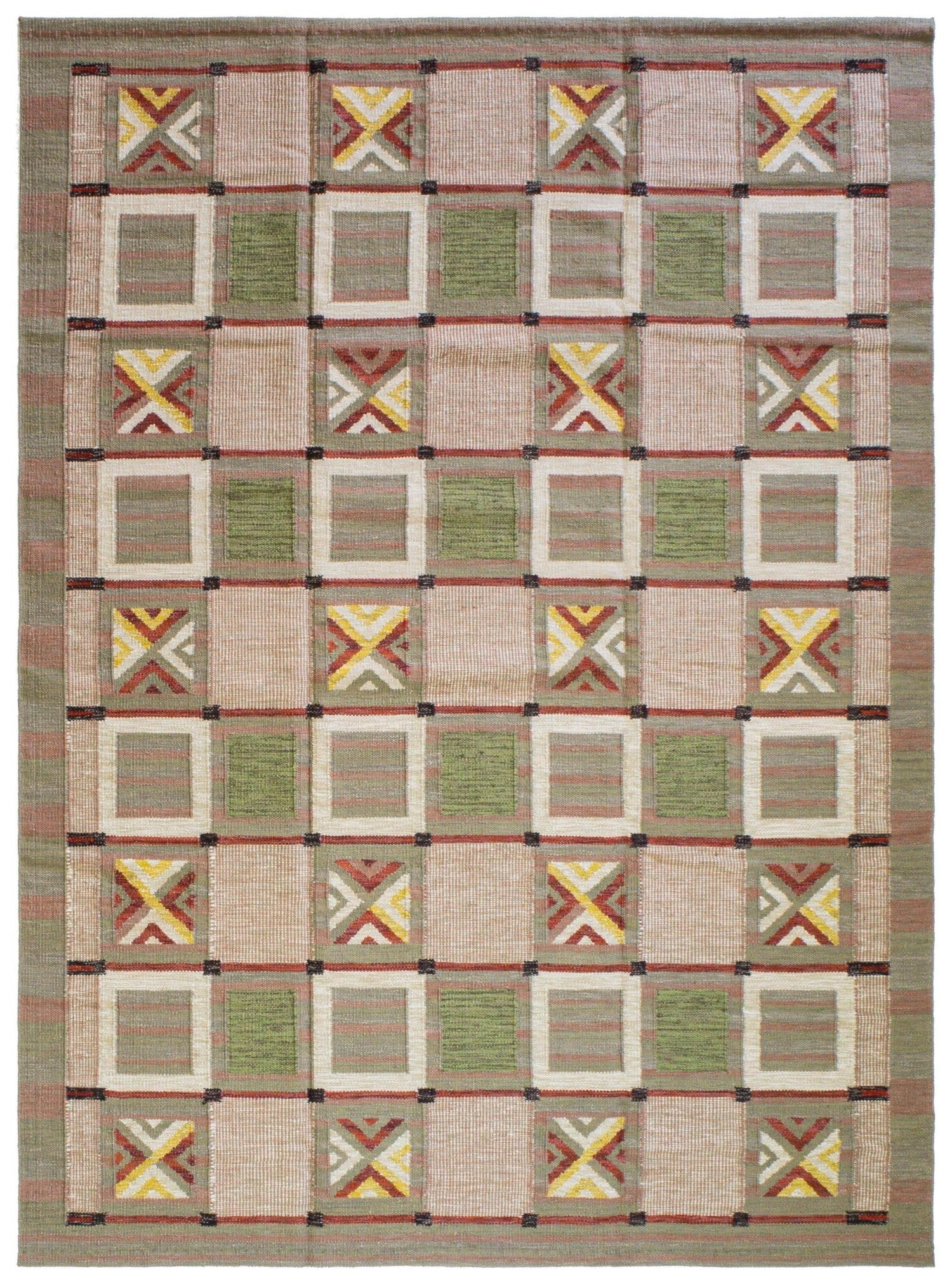 New Modern Flatweave Contemporary Indian Scandinavian 9' 2" X 12' 4" Green Rug