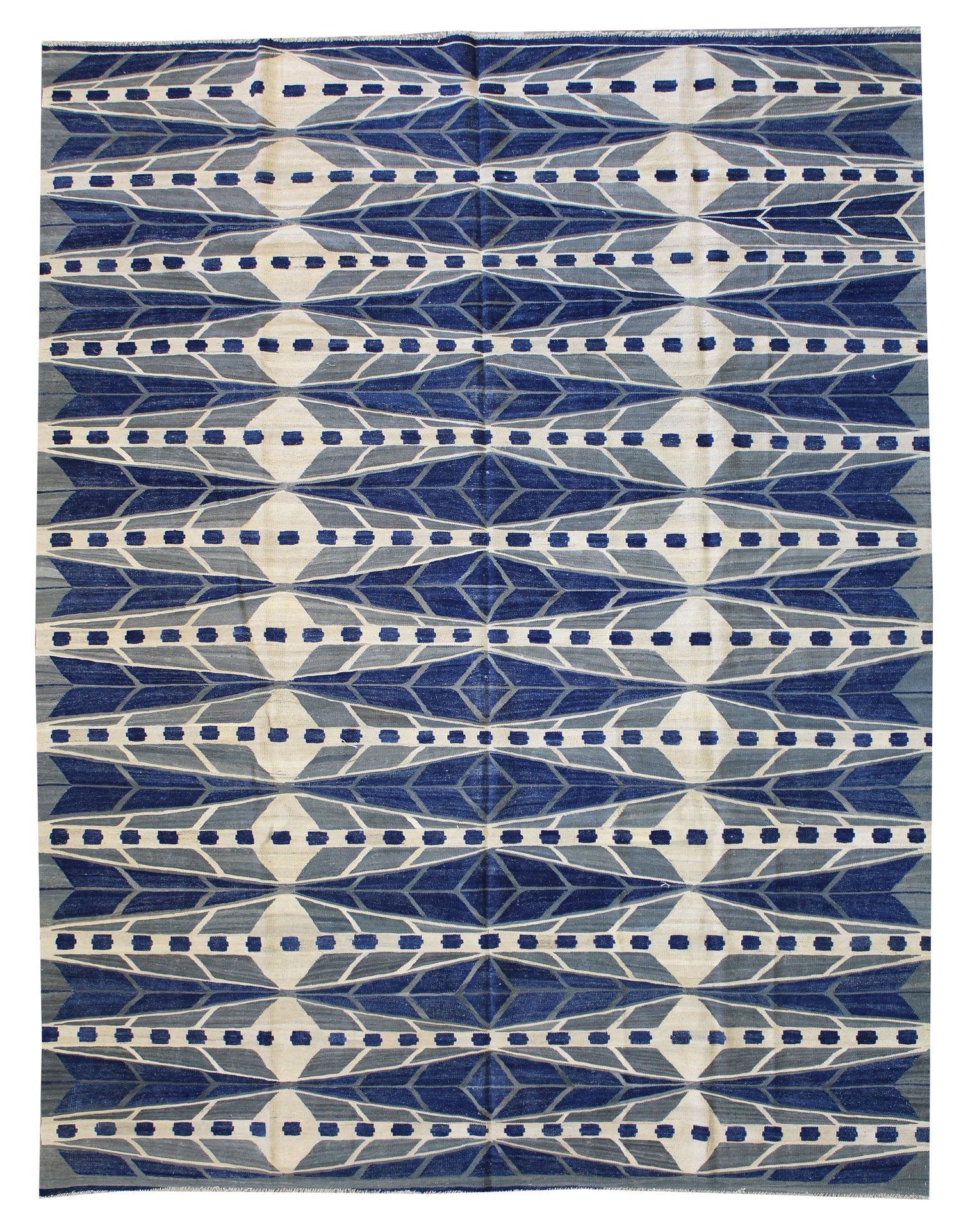 New Modern Flatweave Contemporary Afghani Scandinavian 10' 2" X 13' 9" Blue Rug