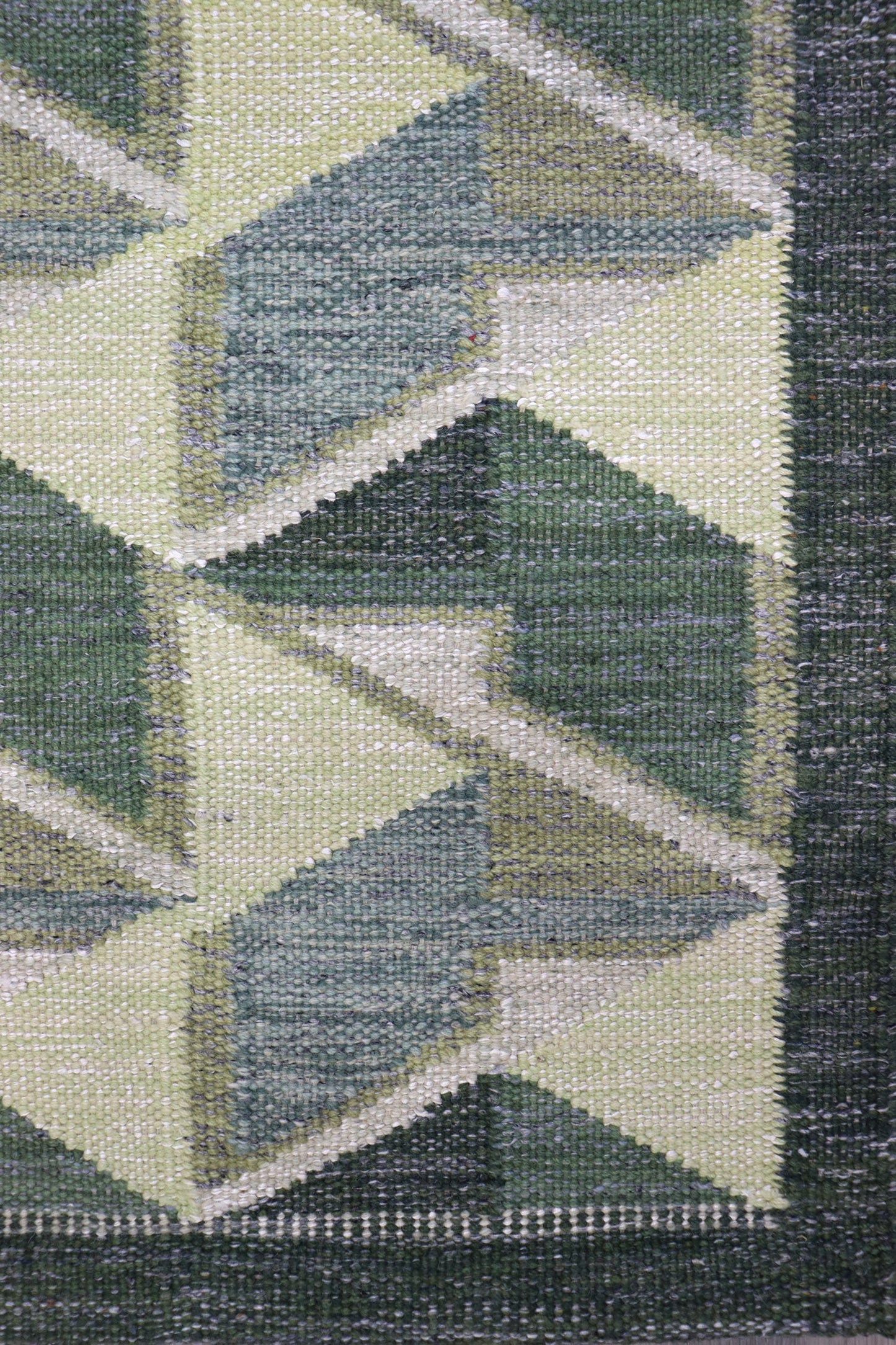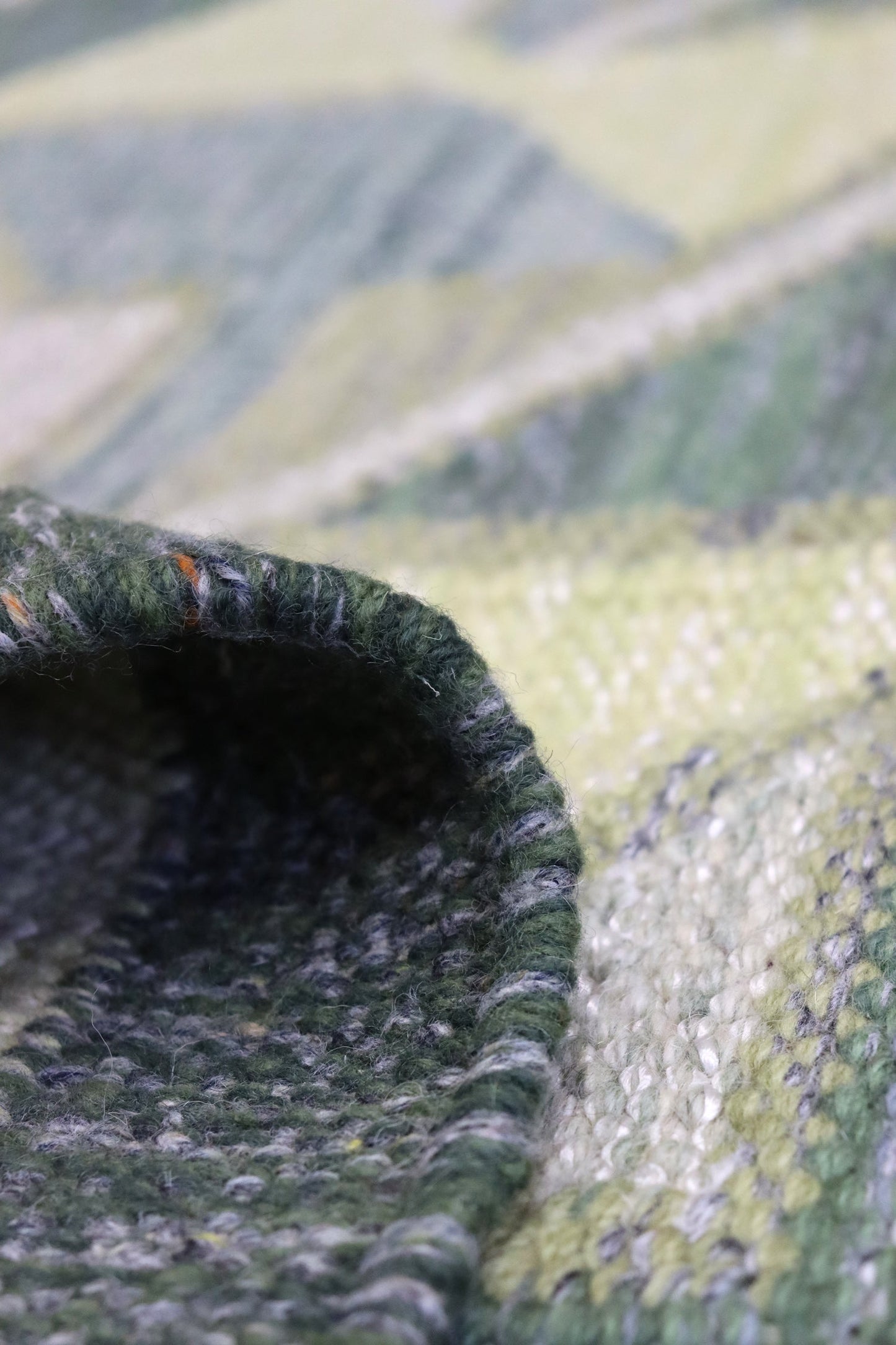 Show off your exquisite taste with our beautiful Scandinavian Handwoven Contemporary Rug (J65453). It’s a prime example of a contemporary Modern Flatweave done right and will add a unique, polished look to your space. Crafted mainly in green and complemented with forest and yellow, the Scandinavian design really pops. The wool & acrylic flatweave surface is resilient yet comfortable and the cotton foundation provides a sturdy base. This 8' 1" X 9' 10" handwoven rug is of new construction and Indian origin. All in all, you’re going to love this piece and it’s going to be the perfect addition to your home. Make it happen today — with your own Scandinavian Handwoven Contemporary Rug.