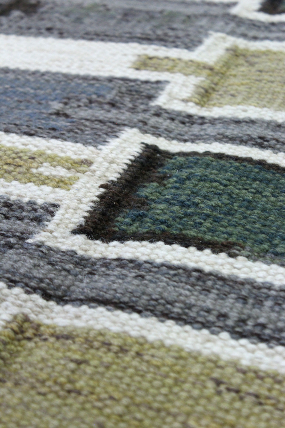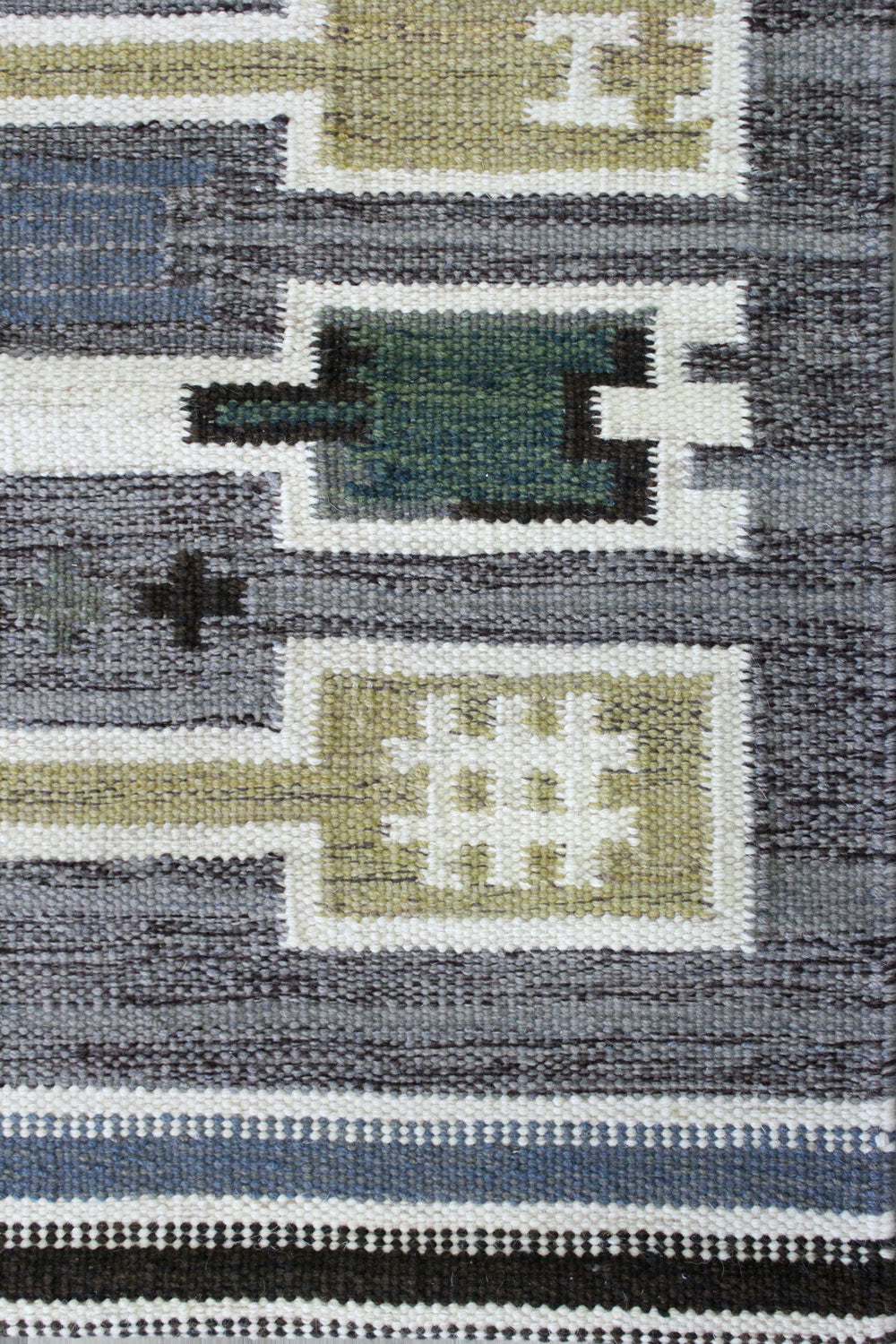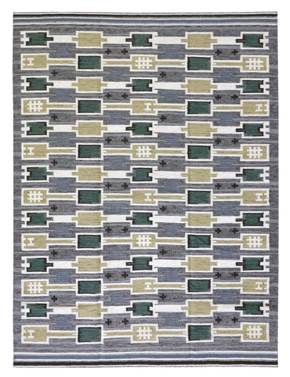 Make your house truly feel like home with our Scandinavian Handwoven Contemporary Rug (J68832). It's new and contemporary. It’s grey on gold with green accent colors. It’s a Modern Flatweave style rug with a Scandinavian motif. All things you gravitate towards when it comes to aesthetics and design in your space. Being a 9' 1" X 12' 0" rug of wool flatweave on a cotton foundation, you can rest assured that this piece will do more than just make the visual impact and create the vibe you want. It comes from the fine Indian tradition of handwoven rugmaking, meaning this rug will serve you well and look terrific for years. Add that extra special personal touch today with your own Scandinavian Handwoven Contemporary Rug.