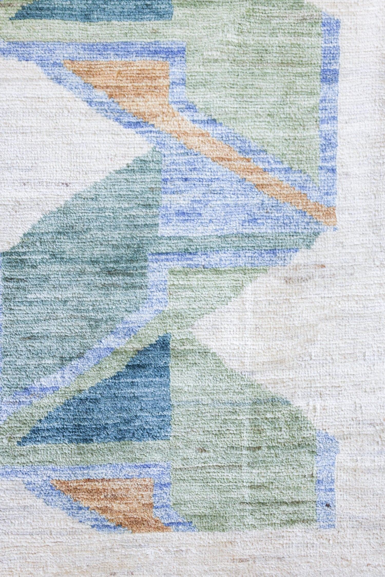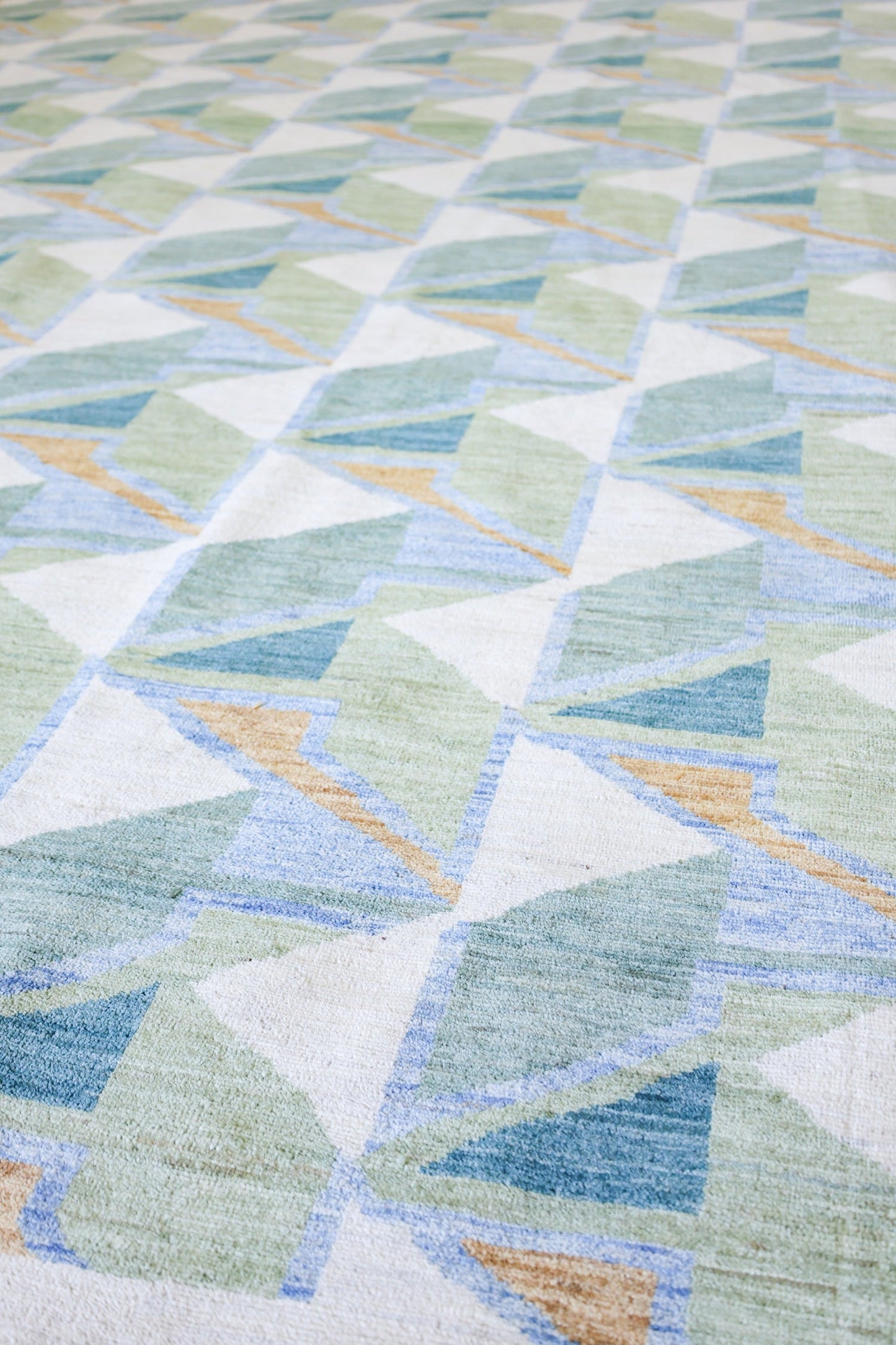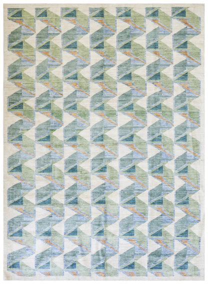 New Bold Geometry Contemporary Afghani Scandinavian 9' 0" X 12' 1" Green Rug