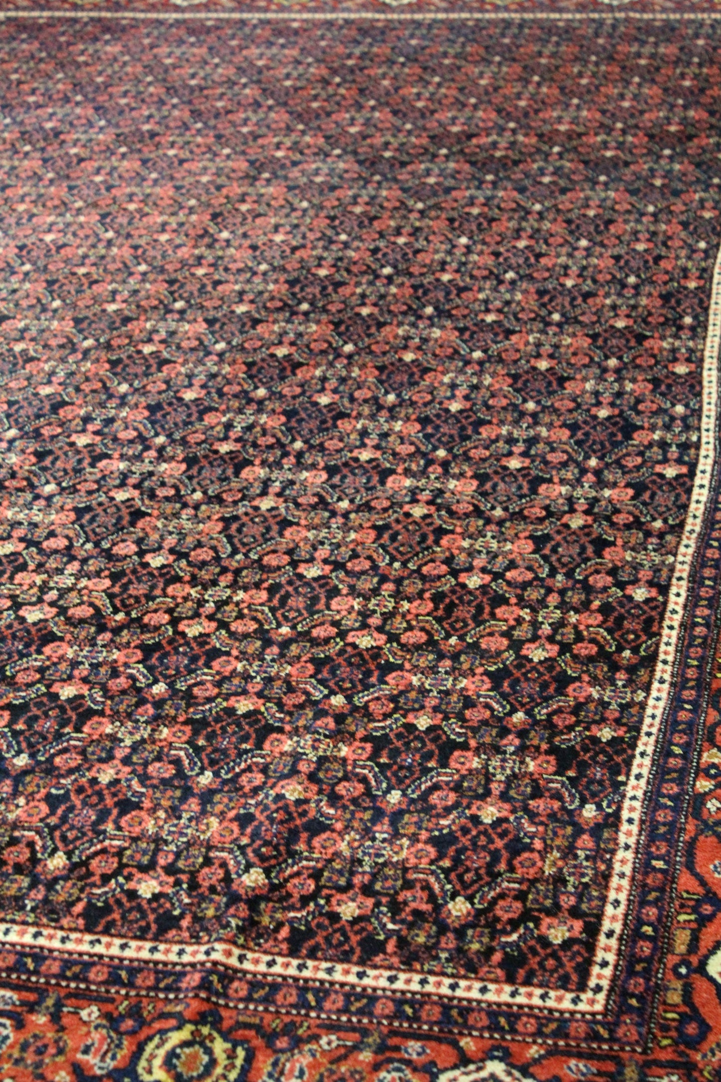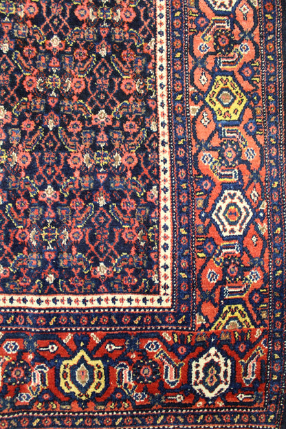 Elevate your room’s style with our Antique Senneh Handwoven Tribal Rug (JF8496). The tribal Nomadic Persian & Turkish style, with its Senneh motif, is definitely a stunner that you’ll be proud to show off in your home. Its distinctive blue, navy and rust palette will add charm, elegance, and that little bit of that ever-elusive je ne sais quoi. Plus, the wool pile on a cotton foundation used in this 7' 2" X 12' 0" rug accentuates its allure. But, this rug isn’t just worthy of gracing the pages of a design magazine. With its masterful Persian handwoven construction, this antique rug from around 1925 will be a prized possession for decades to come. Get your own show-stopping Antique Senneh Handwoven Tribal Rug today!
