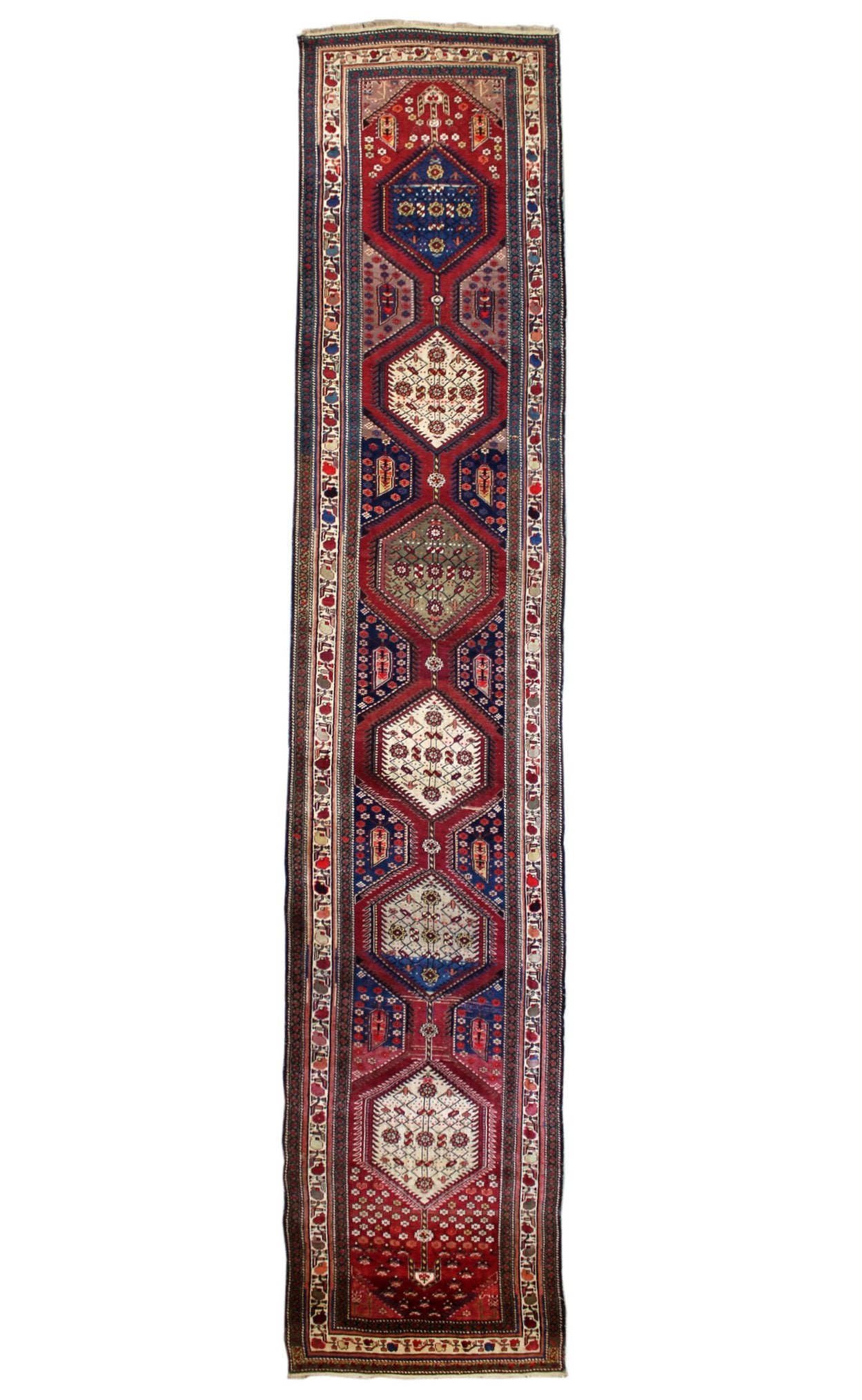 Elevate your room’s style with our Antique Serab Handwoven Tribal Rug (JF8387). The tribal Nomadic Persian & Turkish style, with its Serab motif, is definitely a stunner that you’ll be proud to show off in your home. Its distinctive red, rust and teal palette will add charm, elegance, and that little bit of that ever-elusive je ne sais quoi. Plus, the wool pile on a wool foundation used in this 3' 6" X 17' 8" rug accentuates its allure. But, this rug isn’t just worthy of gracing the pages of a design magazine. With its masterful Persian handwoven construction, this antique rug from around 1925 will be a prized possession for decades to come. Get your own show-stopping Antique Serab Handwoven Tribal Rug today!