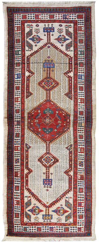 Elevate your room’s style with our Antique Serab Handwoven Tribal Rug (JF8450). The tribal Nomadic Persian & Turkish style, with its Serab motif, is definitely a stunner that you’ll be proud to show off in your home. Its distinctive beige, camel and rust palette will add charm, elegance, and that little bit of that ever-elusive je ne sais quoi. Plus, the wool pile on a wool foundation used in this 3' 1" X 7' 8" rug accentuates its allure. But, this rug isn’t just worthy of gracing the pages of a design magazine. With its masterful Persian handwoven construction, this antique rug from around 1925 will be a prized possession for decades to come. Get your own show-stopping Antique Serab Handwoven Tribal Rug today!