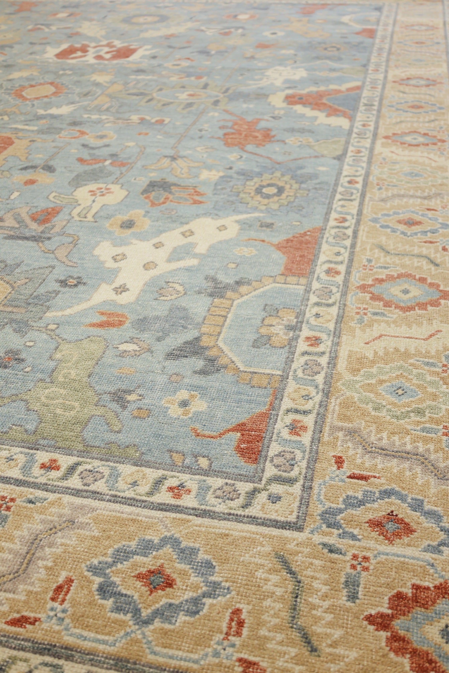 New Overdyed & Distressed Transitional Indian Serapi 10' 1" X 13' 11" Blue Rug