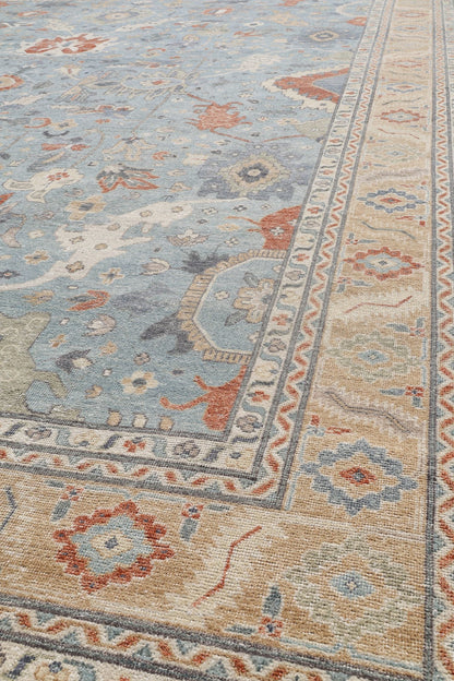New Overdyed & Distressed Transitional Indian Serapi 13' 11" X 17' 0" Blue Rug