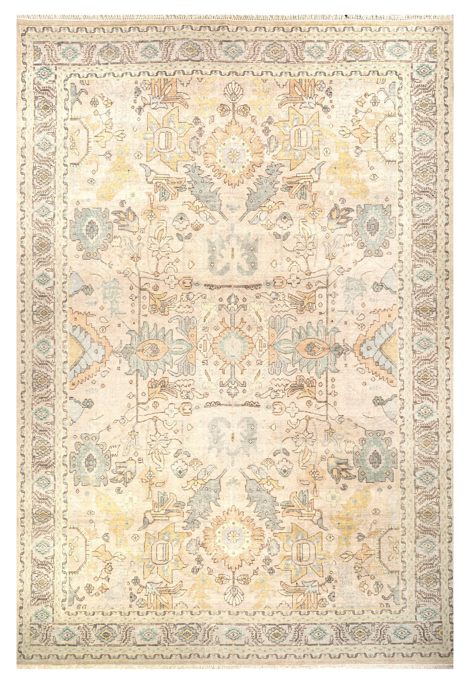New Overdyed & Distressed Transitional Indian Serapi 9' 2" X 11' 11" Beige Rug