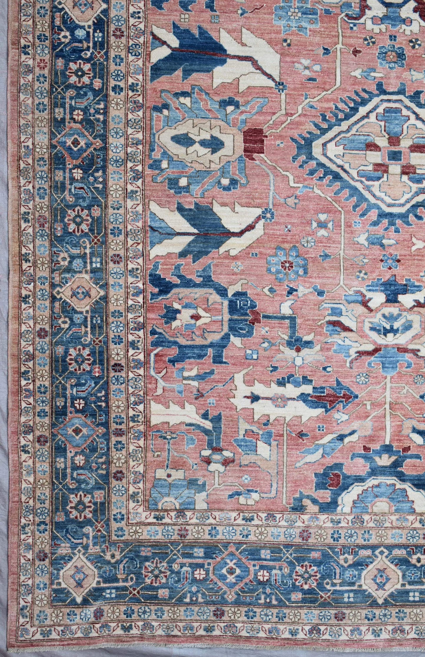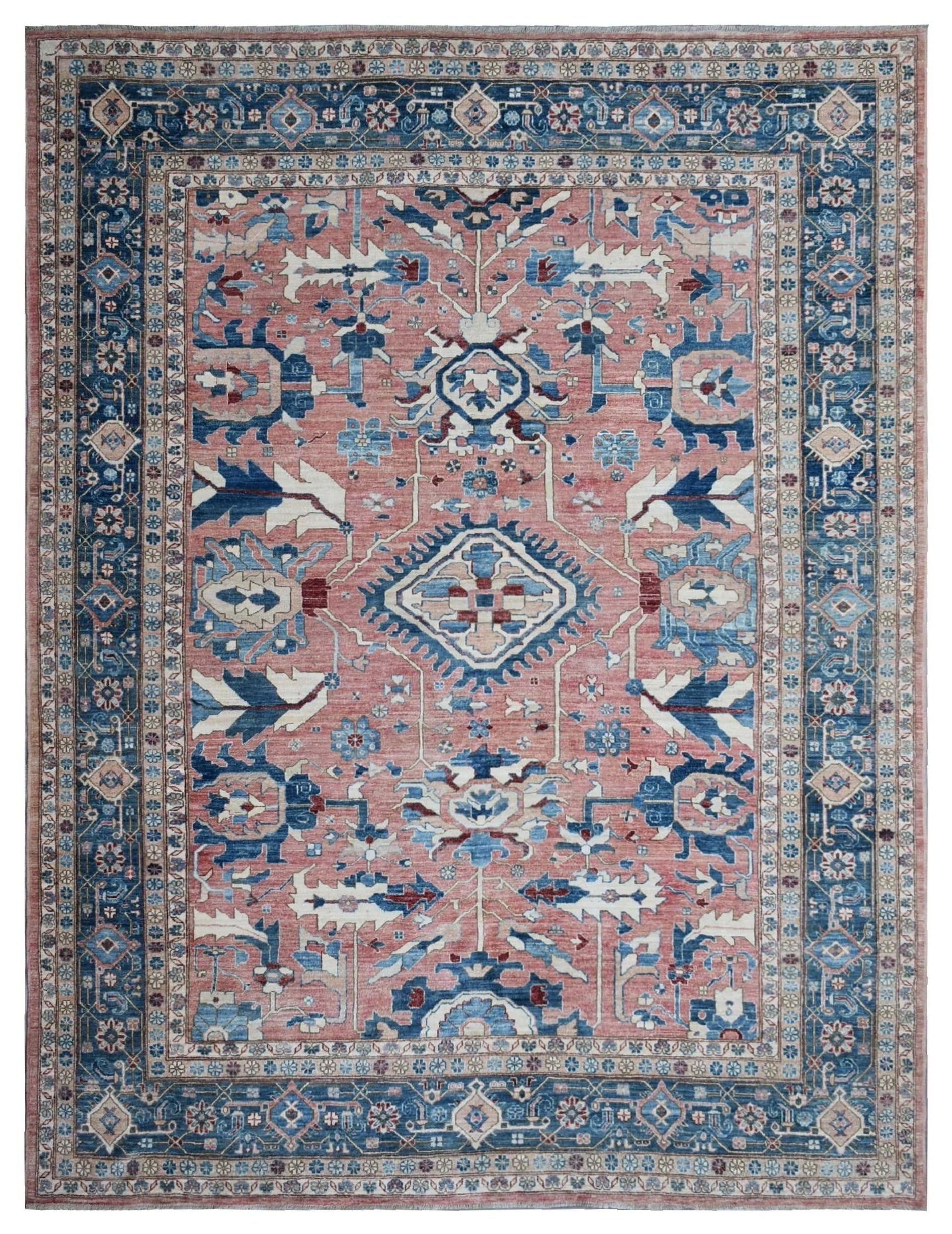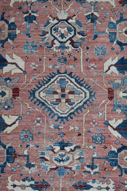 New Nomadic Persian & Turkish Tribal Afghani Serapi 9' 0" X 11' 10" Pink Rug