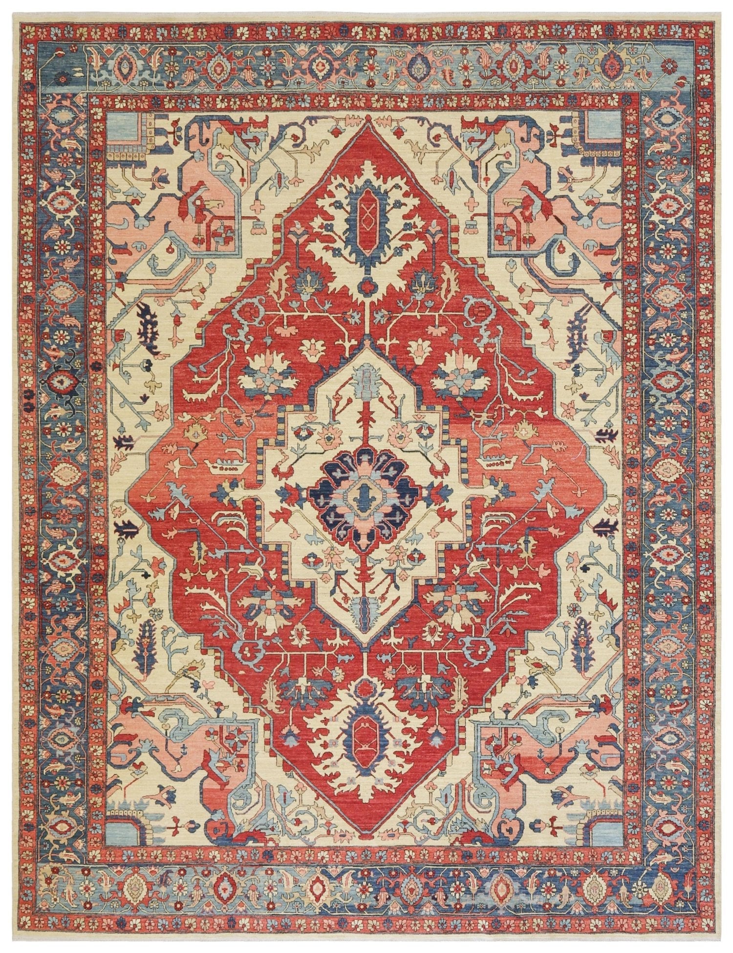New Nomadic Persian & Turkish Tribal Afghani Serapi 9' 3" X 11' 8" Red Rug