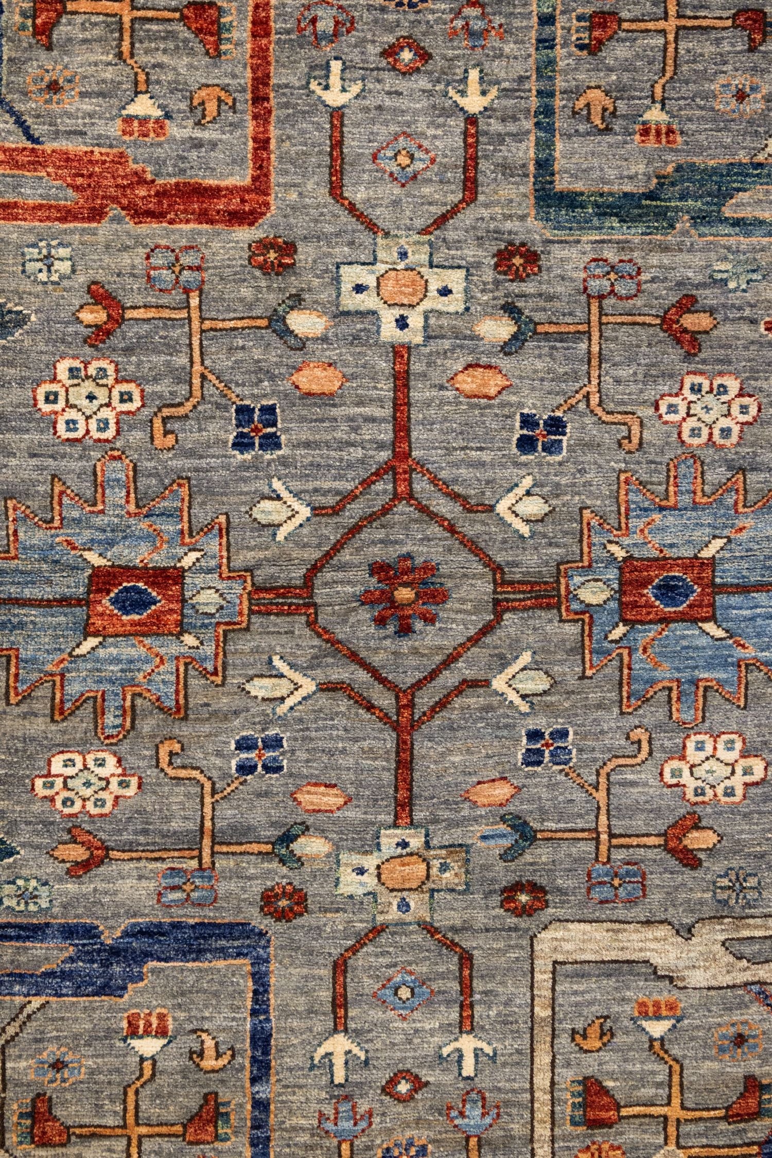 New Nomadic Persian & Turkish Tribal Afghani Serapi 2' 11" X 4' 10" Grey Rug