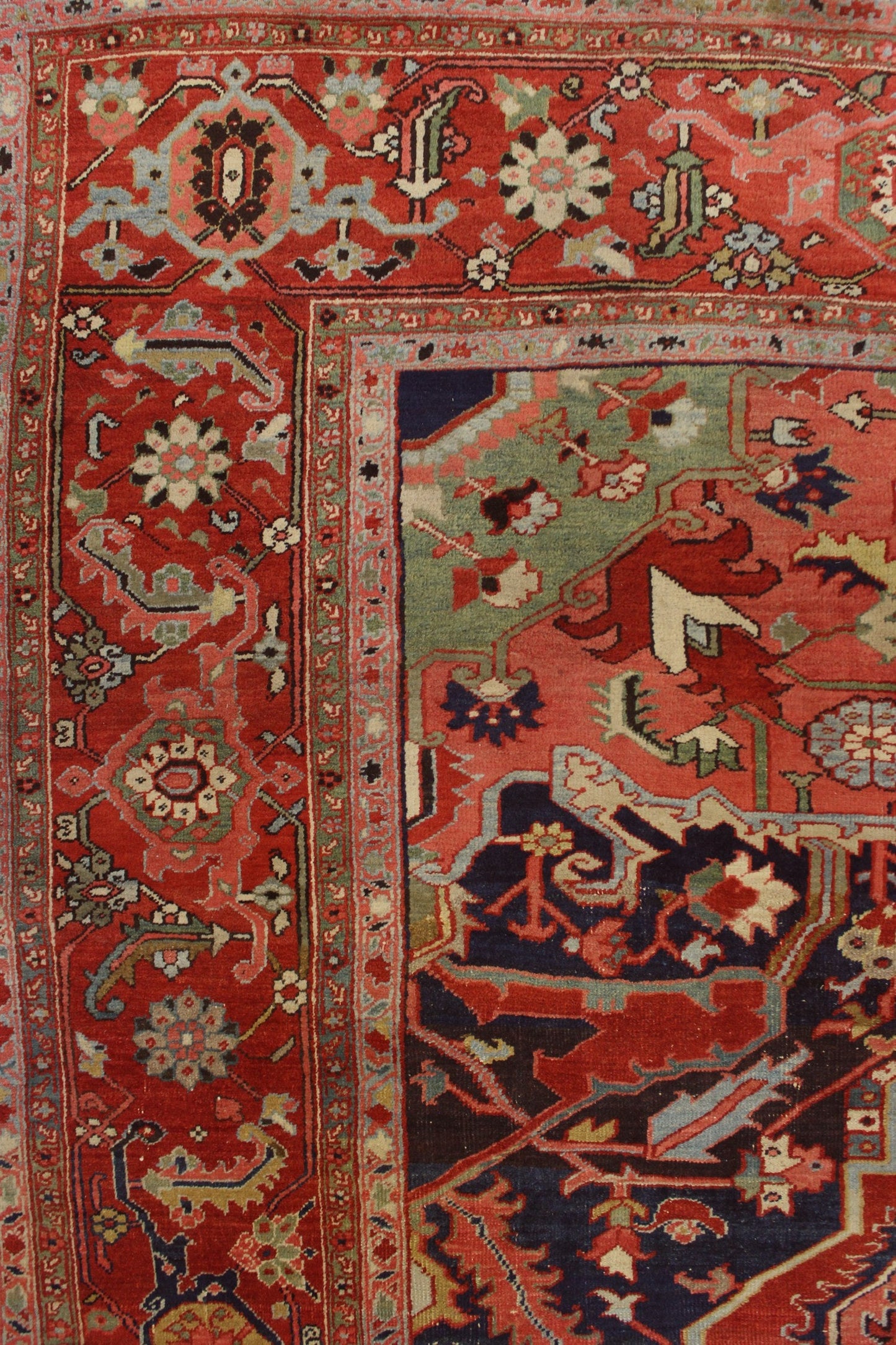 This Serapi rug not only reflects the time-honored Persian weaving techniques but also showcases the cultural heritage of the region. Its large, spaced-apart motifs and robust color contrast are indicative of the traditional tribal influences that make Serapi rugs highly regarded artifacts from this period.