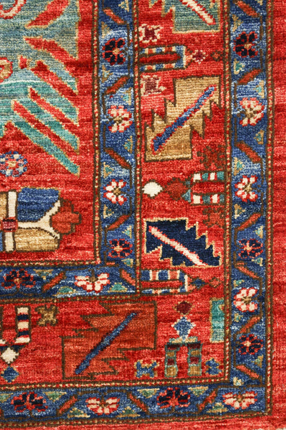 New Caucasian Tribal Afghani Sevan Kazak 4' 2" X 6' 5" Red Rug