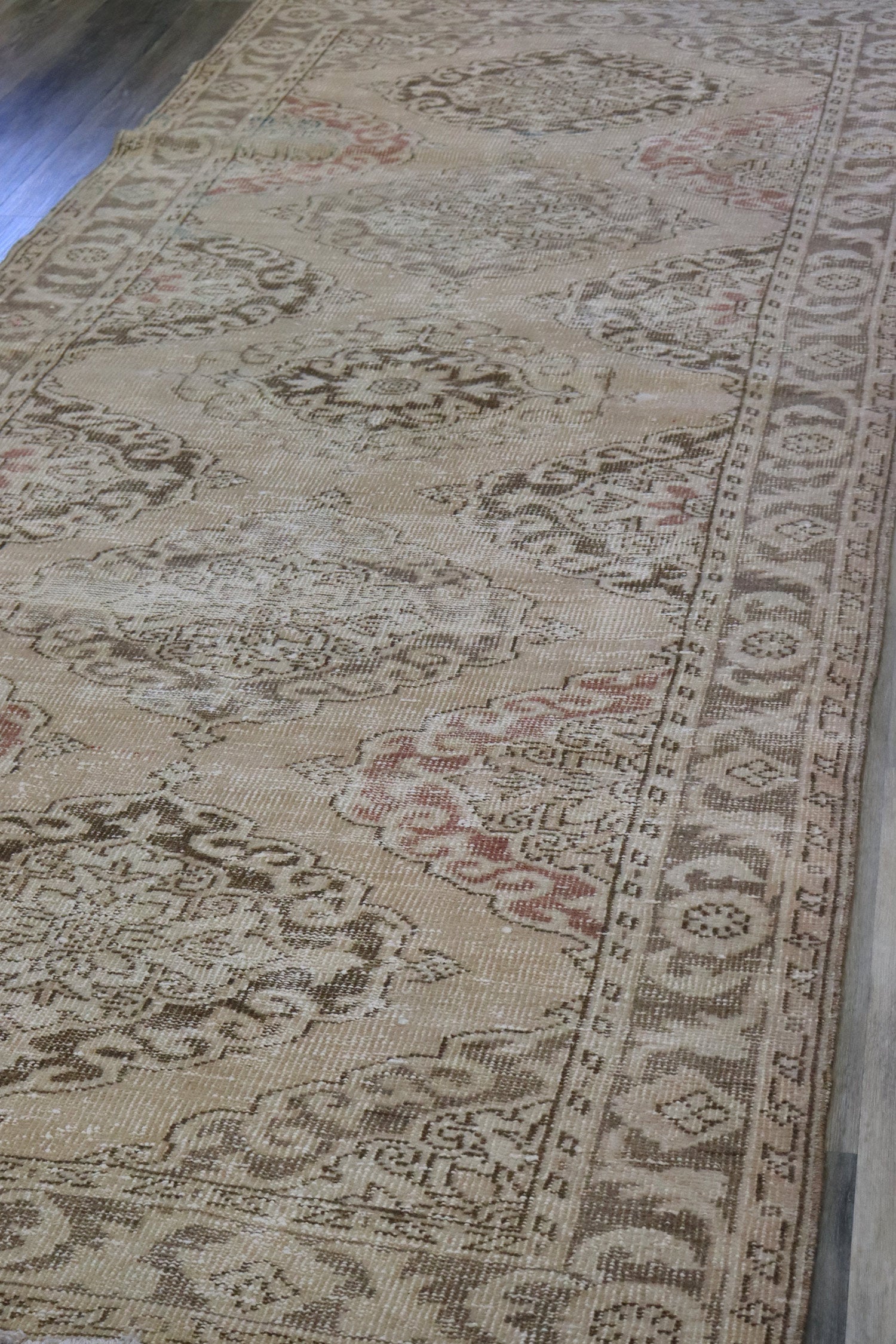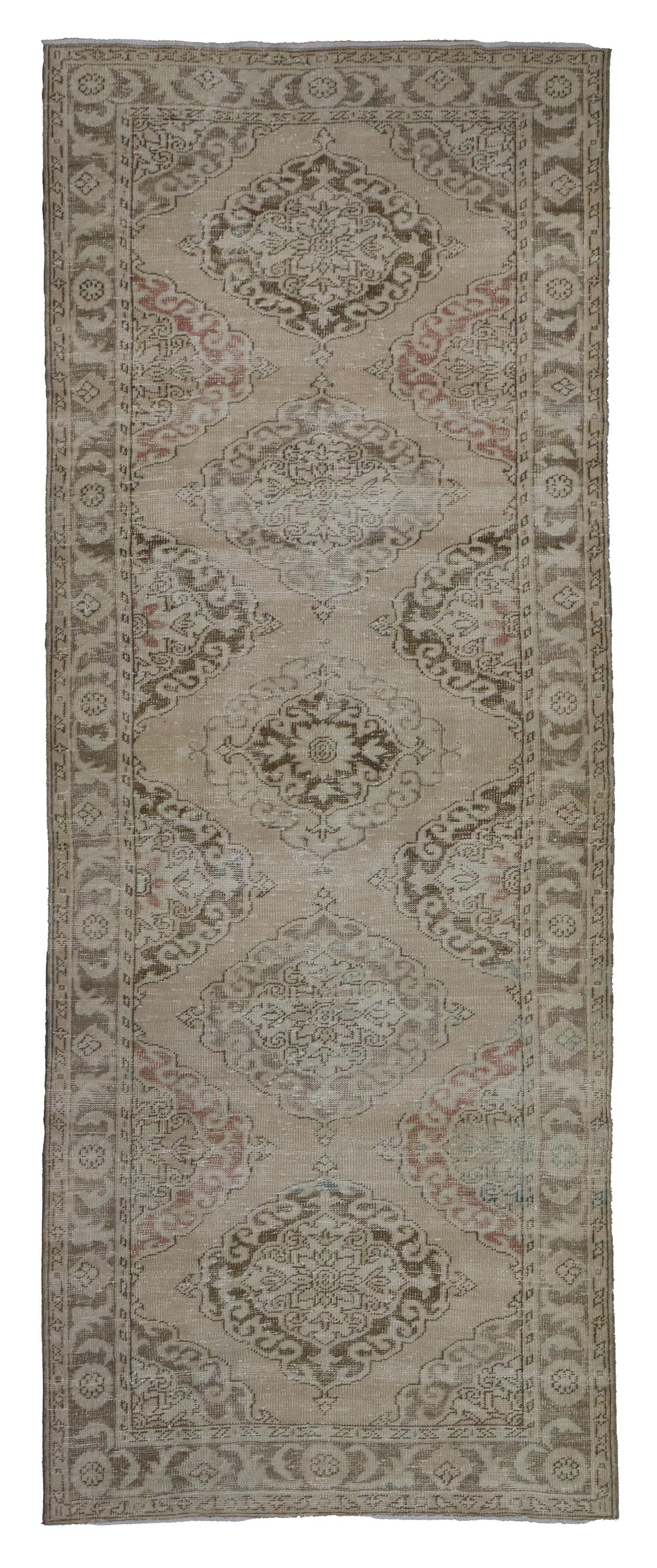 Change things up — transform your space with our amazing Vintage Sille Handwoven Transitional Rug (J66681). This vintage 4' 5" X 11' 9" rug is in the transitional Overdyed & Distressed style and features a stunning Sille design that you’ll absolutely love. This rug is primarily brown on beige with taupe accents. You’ll also appreciate the wool pile on a cotton foundation, which feels great underfoot! As with other handwoven Turkish rugs dating to around 1950, this one’s made to last. You’ll be enjoying the elements of interest and sophistication it adds to your home for years. Don’t delay — refresh your room today with your own Vintage Sille Handwoven Transitional Rug.