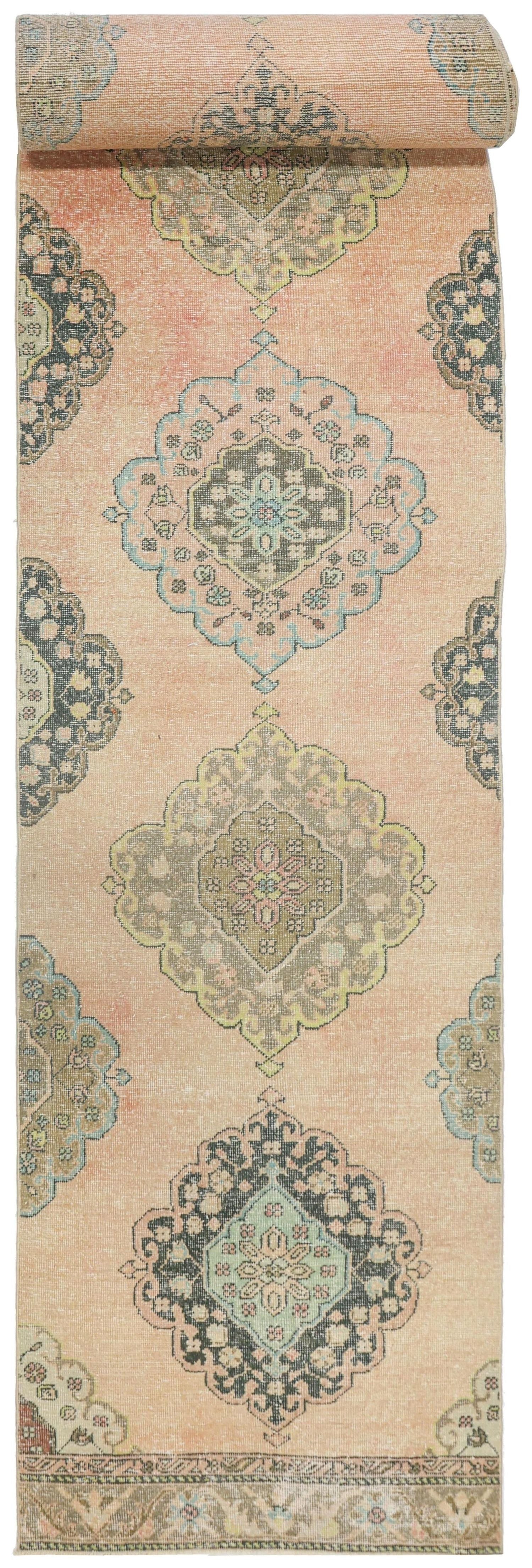 Vintage 1960 Vintage Turkish Village Tribal Turkish Sille 2' 9" X 25' 5" Pink Rug