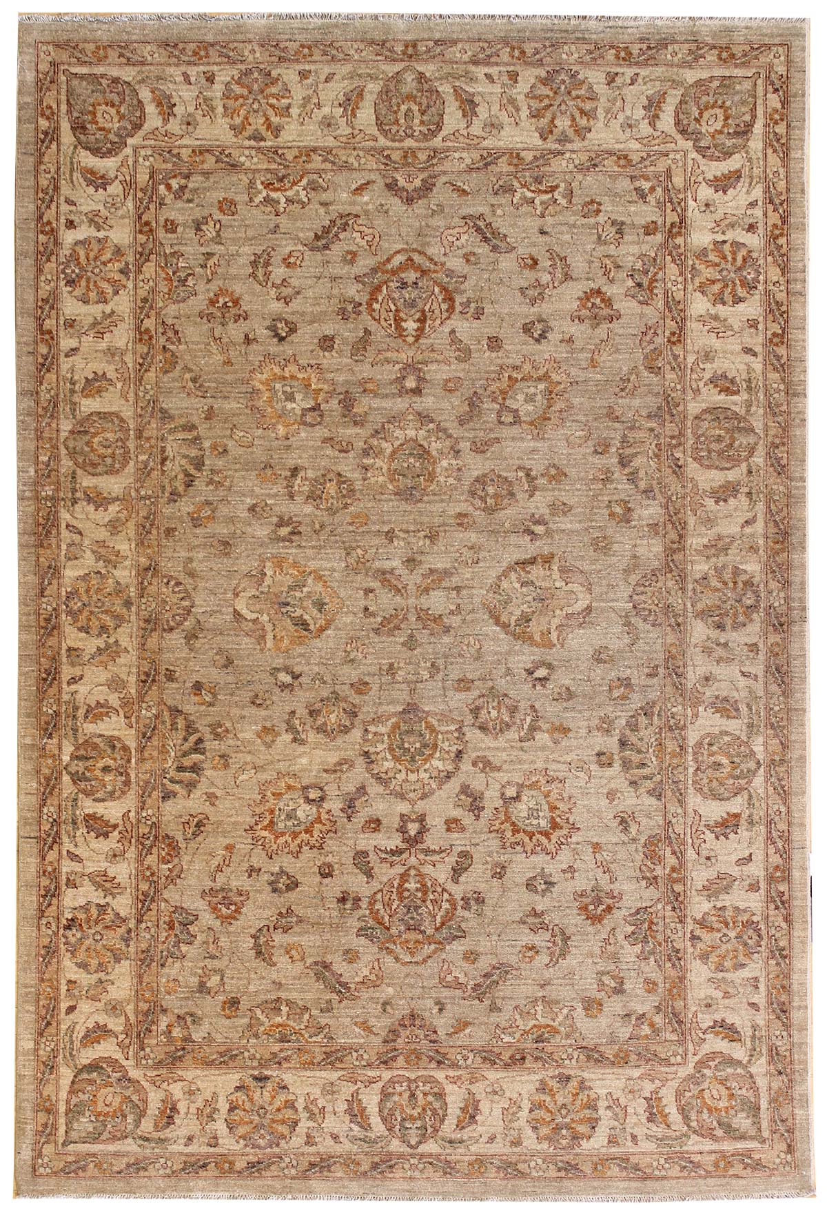 Get ready to fall in love with our Sultanabad Handwoven Traditional Rug (39002)! This traditional Large Scale Floral piece is khaki with beige accents. The Sultanabad design and 6' 1" X 8' 10" size make this new handwoven Pakistani rug a gorgeous addition to any space. Its wool pile surface on a cotton foundation means this rug is incredibly durable — you’ll be able to cherish it for years to come. Get your Sultanabad Handwoven Traditional Rug today!