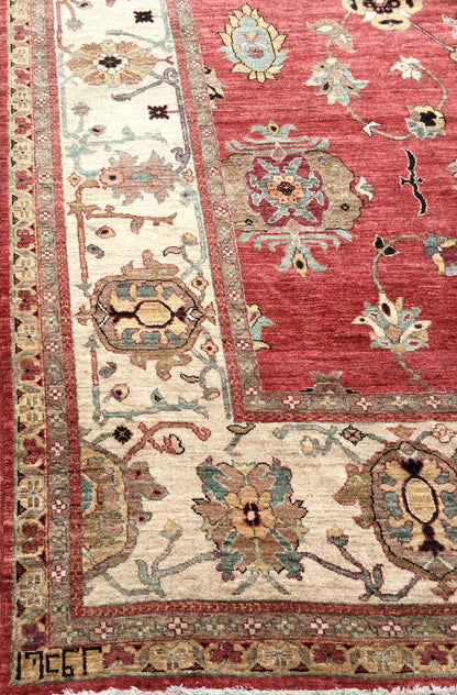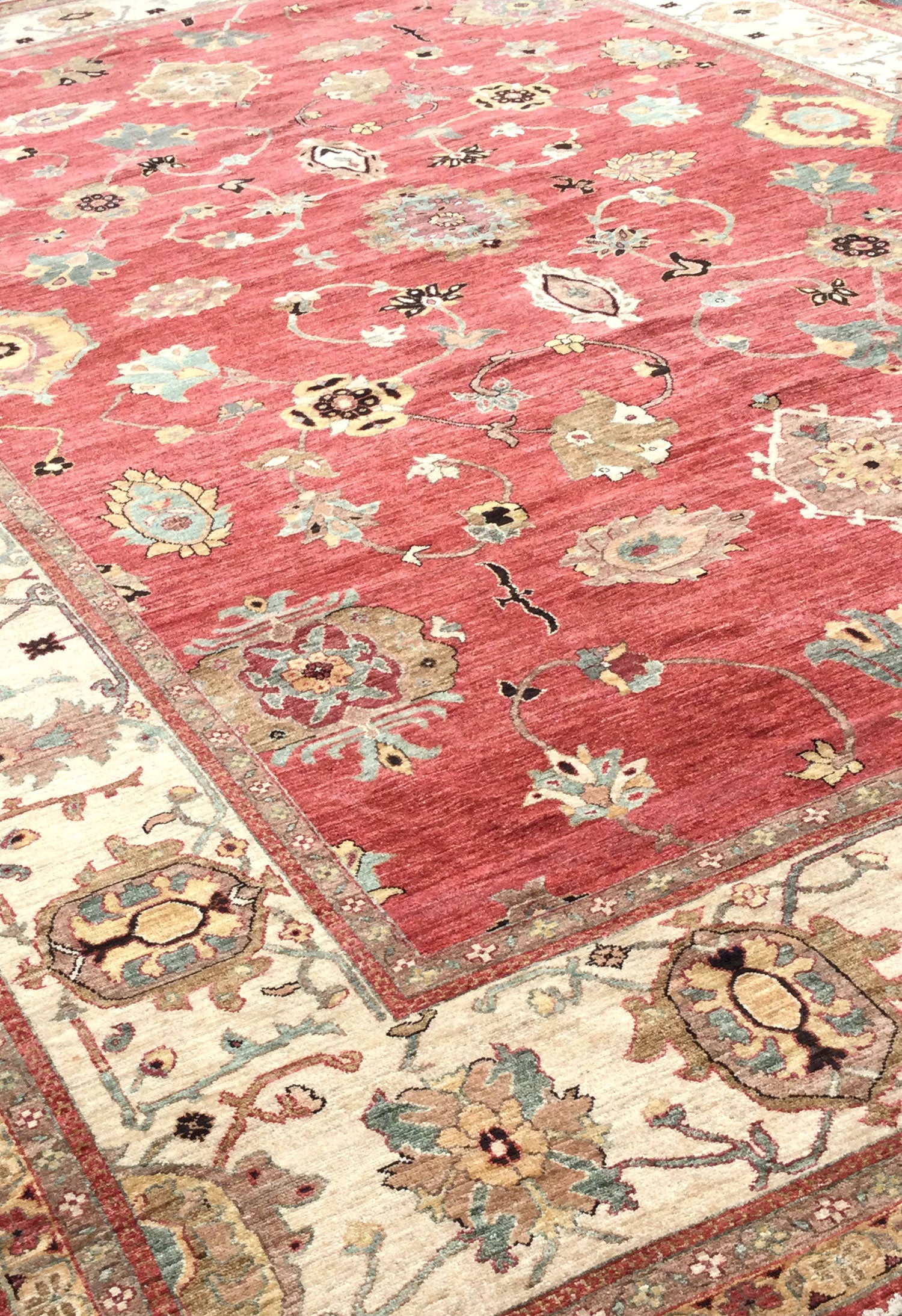 Get ready to fall in love with our Sultanabad Handwoven Traditional Rug (J10396)! This traditional Large Scale Floral piece is red with ivory accents. The Sultanabad design and 11' 3" X 15' 10" size make this new handwoven Pakistani rug a gorgeous addition to any space. Its wool pile surface on a cotton foundation means this rug is incredibly durable — you’ll be able to cherish it for years to come. Get your Sultanabad Handwoven Traditional Rug today!