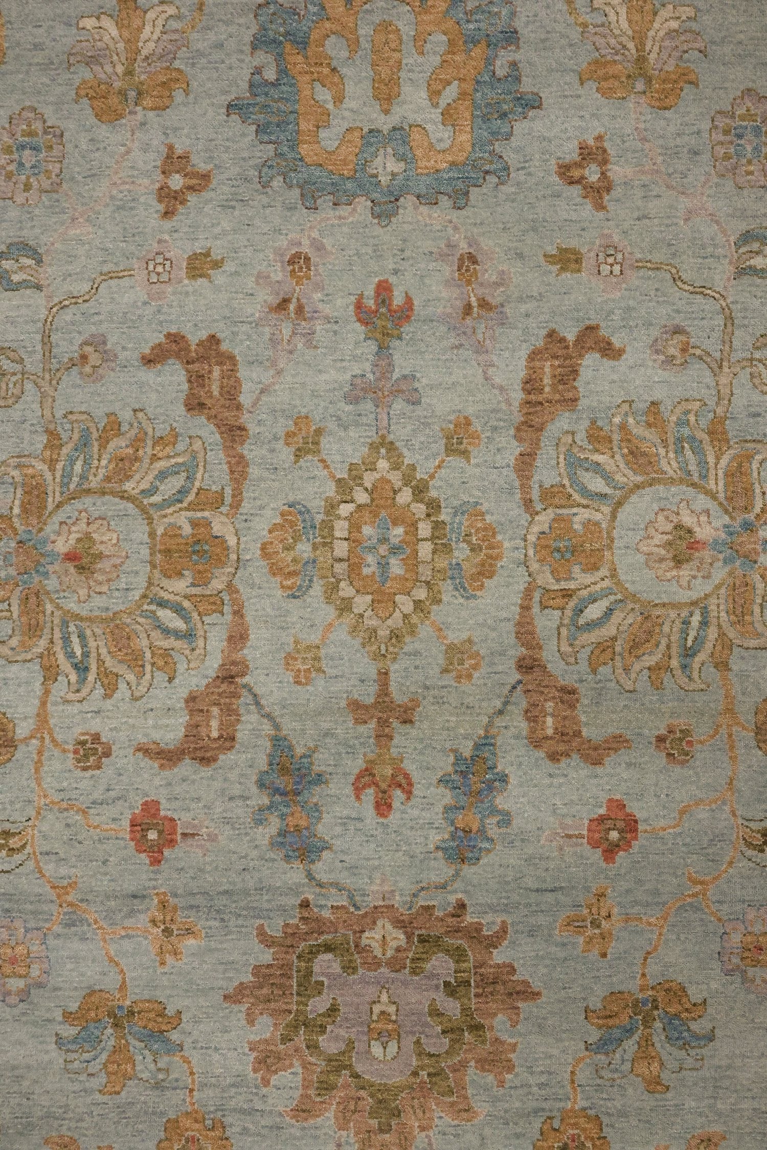 New Large Scale Floral Traditional Indian Sultanabad 9' 0" X 12' 2" Green Rug
