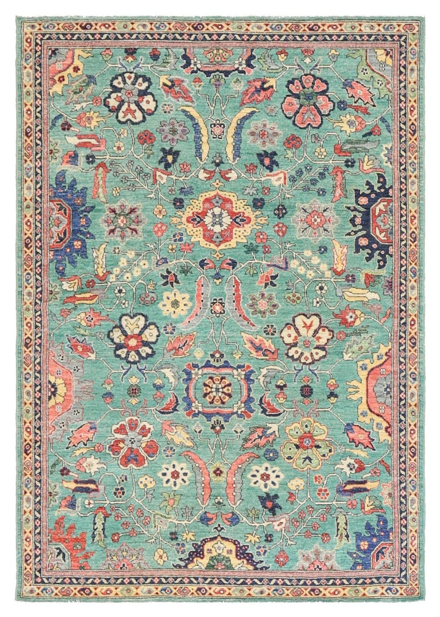 New Nomadic Persian & Turkish Tribal Afghani Sultanabad 5' 0" X 7' 2" Green Rug