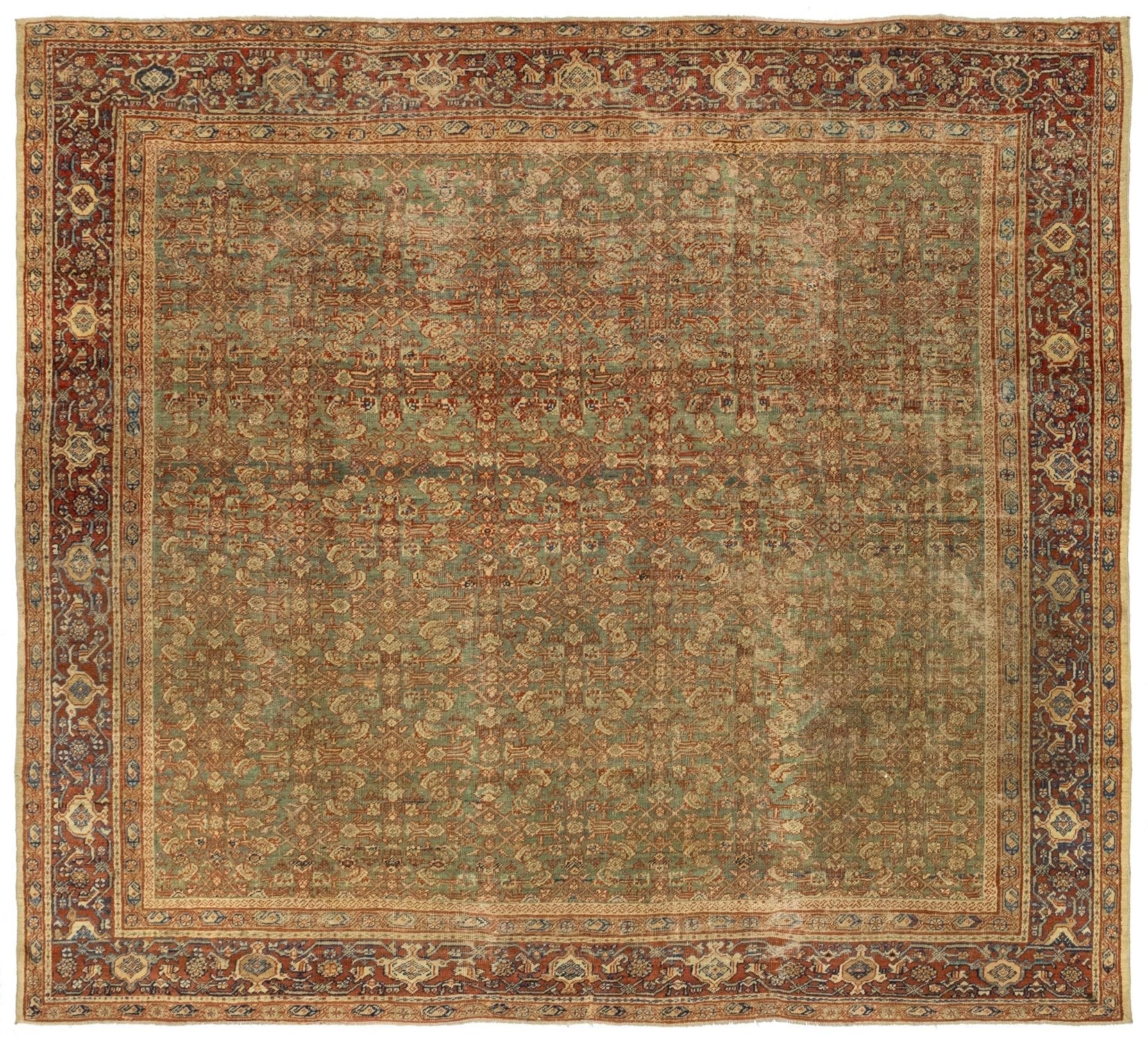 Vintage 1880 Nomadic Persian & Turkish Tribal Persian Sultanabad 10' 8" X 11' 7" Green Rug