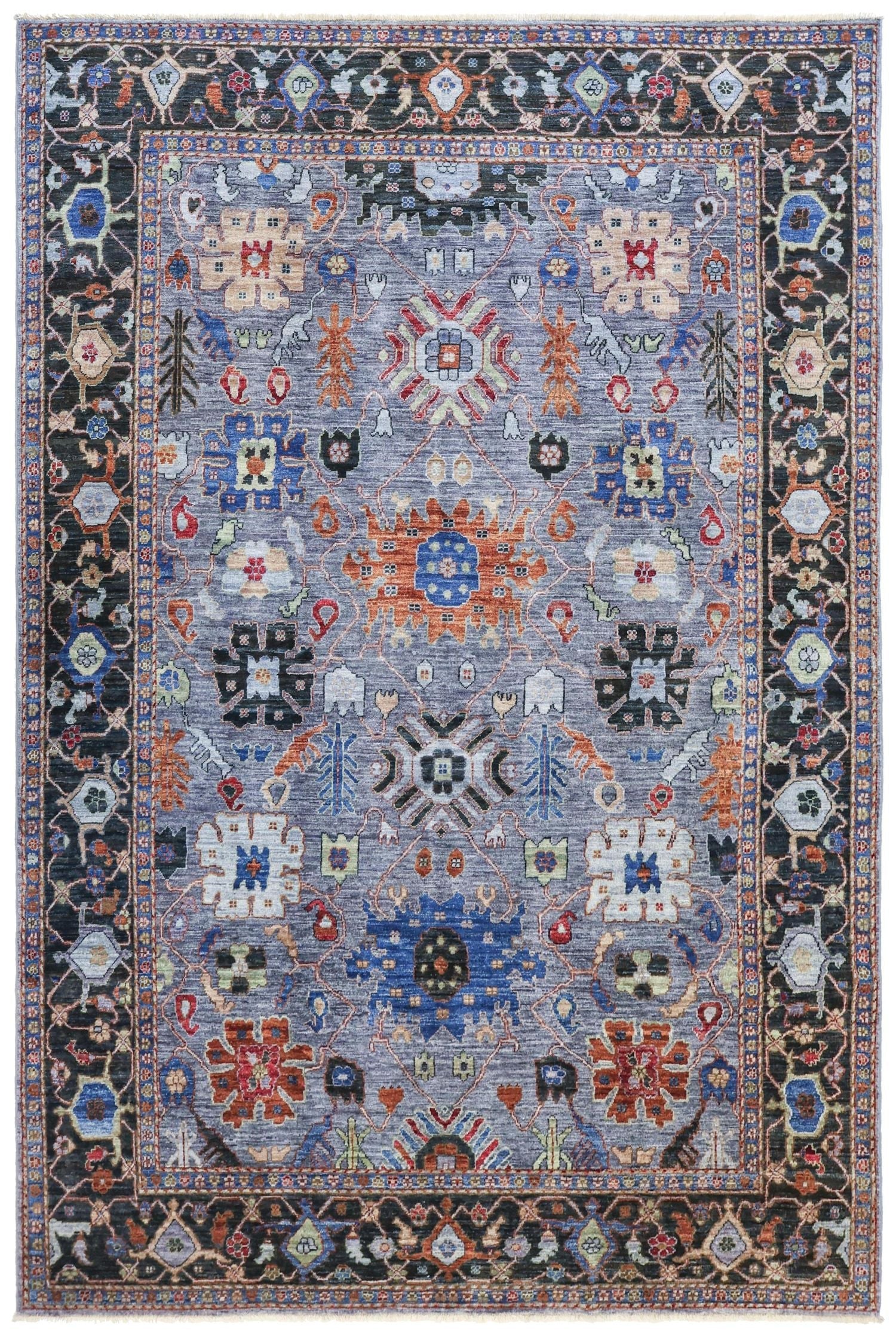 New Nomadic Persian & Turkish Tribal Afghani Sultanabad 6' 1" X 8' 10" Grey Rug