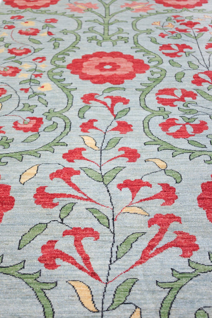 New Ikat & Suzani Transitional Afghani Suzani 3' 4" X 11' 10" Blue Rug