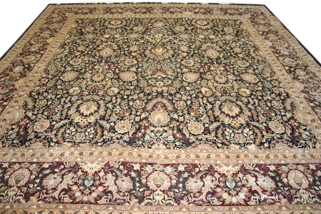 Get ready to fall in love with our Tabriz Handwoven Traditional Rug (J16774)! This traditional Formal Classic Persian piece is black with burgundy accents. The Tabriz design and 12' 0" X 12' 5" size make this new handwoven Pakistani rug a gorgeous addition to any space. Its wool & silk pile surface on a cotton foundation means this rug is incredibly durable — you’ll be able to cherish it for years to come. Get your Tabriz Handwoven Traditional Rug today!