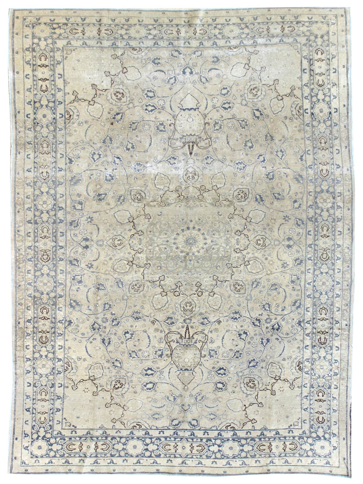 Make a grand statement in your home with our stunning Antique Tabriz Handwoven Traditional Rug (J47401). This traditional handwoven Persian rug has an alluring Formal Classic Persian style with its Tabriz design in rich hues of blue, ivory and light blue. Wool pile on a cotton foundation make this antique rug from around 1925 both sturdy and comfortable to the touch. At 7' 5" X 11' 0" in size, this rug will add just the right amount of pizzazz to any room. All in, you’ll be loving this rug today, tomorrow, and beyond. So, go ahead — get your Antique Tabriz Handwoven Traditional Rug today!