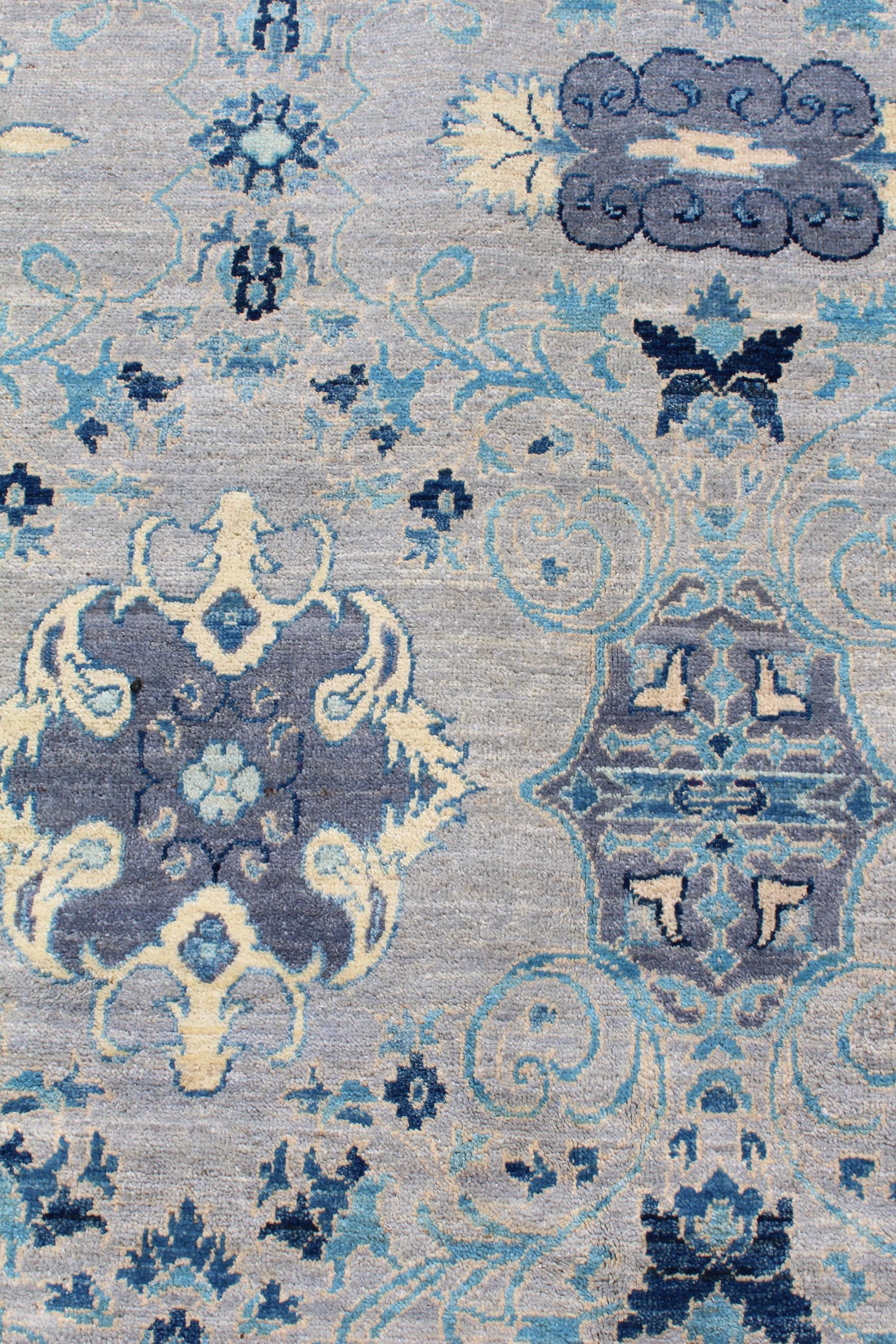 Crafted with meticulous attention to detail, this rug employs the asymmetrical "Persian" knot type, which enhances the durability and longevity of the weave. The pile is made of luxurious wool, while the warp and weft are made of cotton. The double wefted heavily packed depressed warp weaving technique ensures that this rug is not only visually stunning but also built to withstand the test of time.