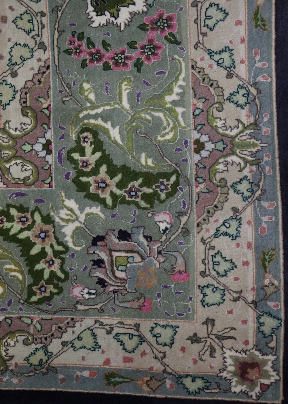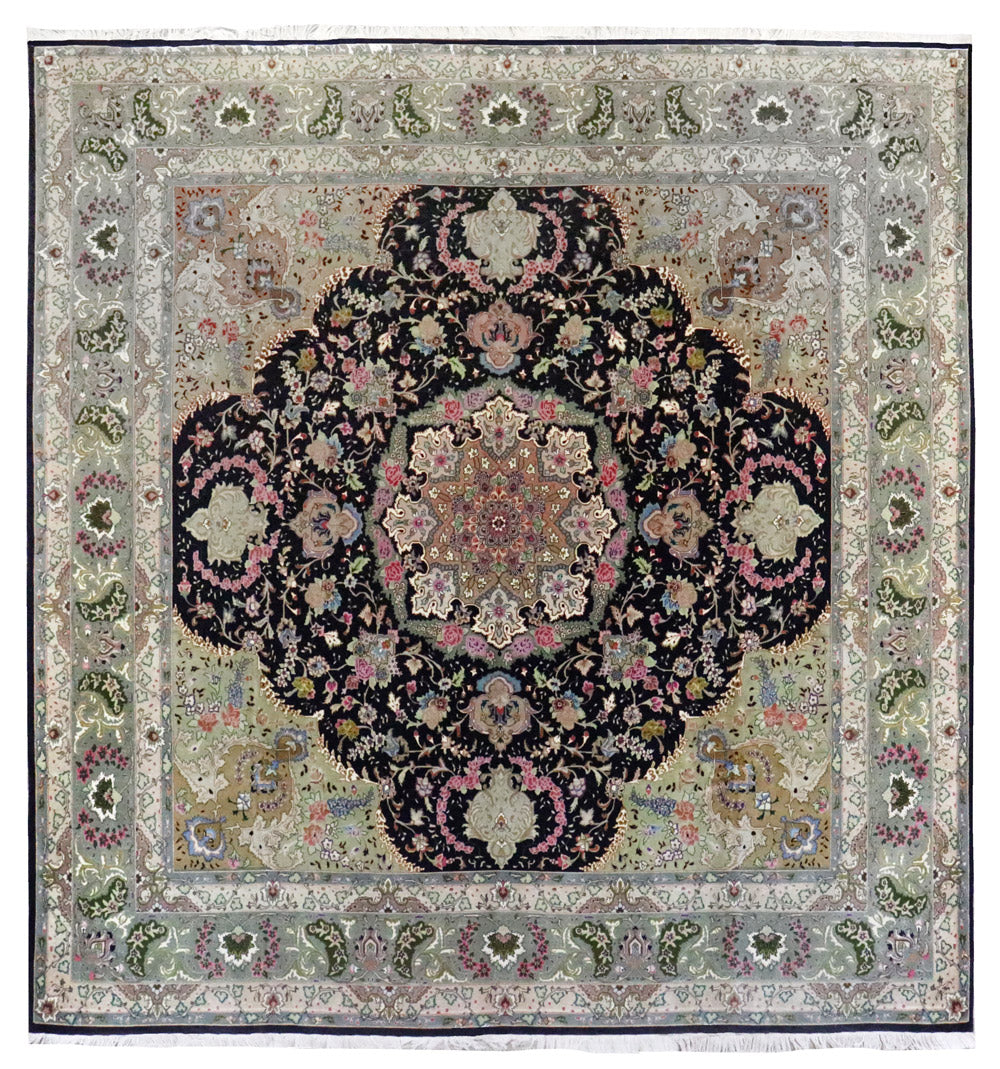 Make your house truly feel like home with our Vintage Tabriz Handwoven Traditional Rug (J67886). It's vintage (circa 1970) and traditional. It’s green on navy with sage accent colors. It’s a Formal Classic Persian style rug with a Tabriz motif. All things you gravitate towards when it comes to aesthetics and design in your space. Being a 9' 9" X 10' 0" rug of wool & silk pile on a cotton foundation, you can rest assured that this piece will do more than just make the visual impact and create the vibe you want. It comes from the fine Persian tradition of handwoven rugmaking, meaning this rug will serve you well and look terrific for years. Add that extra special personal touch today with your own Vintage Tabriz Handwoven Traditional Rug.