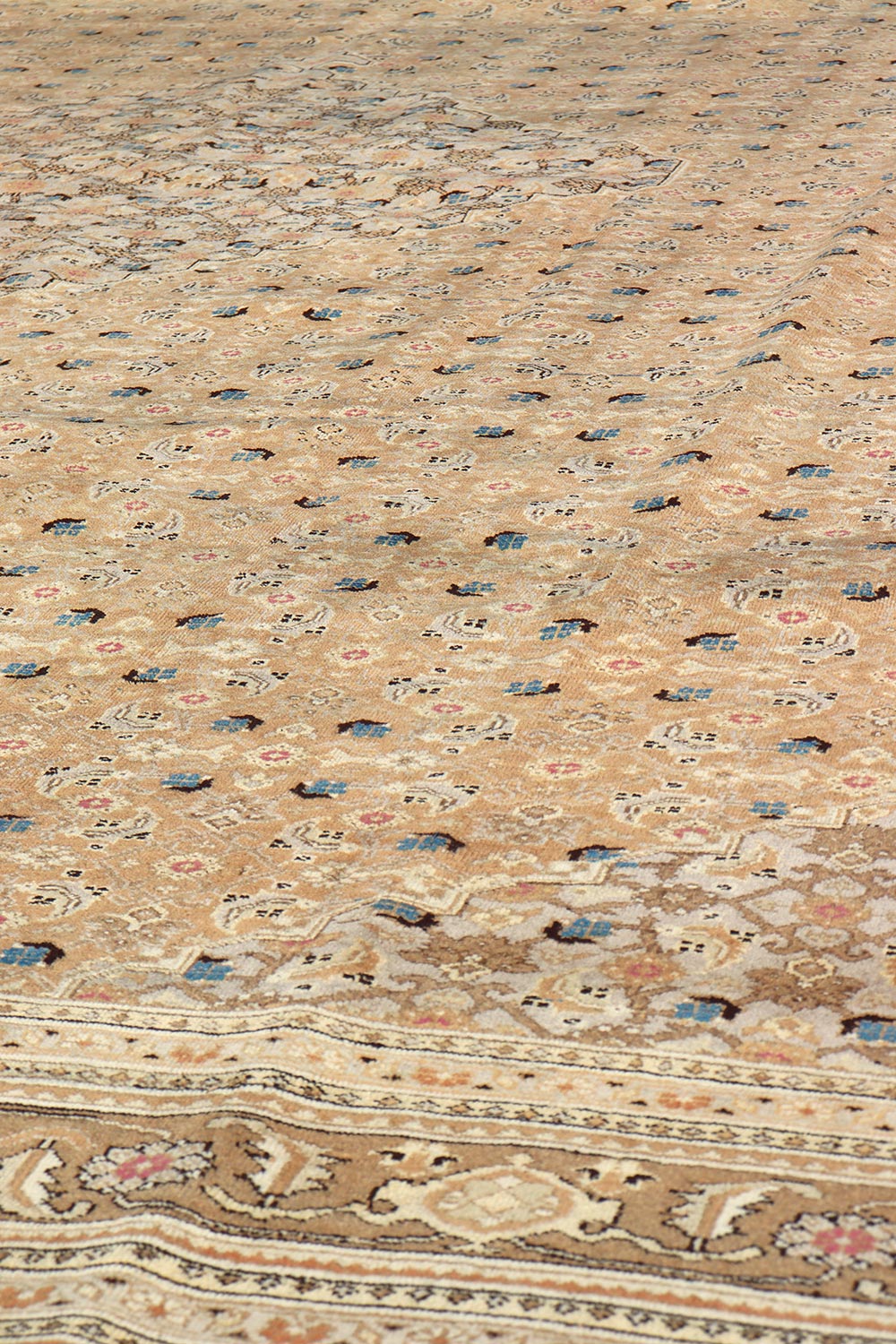 Elevate your room’s style with our Antique Tabriz Handwoven Traditional Rug (JF8587). The traditional Formal Classic Persian style, with its Tabriz motif, is definitely a stunner that you’ll be proud to show off in your home. Its distinctive orange, peach and blue palette will add charm, elegance, and that little bit of that ever-elusive je ne sais quoi. Plus, the wool pile on a cotton foundation used in this 13' 6" X 18' 0" rug accentuates its allure. But, this rug isn’t just worthy of gracing the pages of a design magazine. With its masterful Persian handwoven construction, this antique rug from around 1940 will be a prized possession for decades to come. Get your own show-stopping Antique Tabriz Handwoven Traditional Rug today!