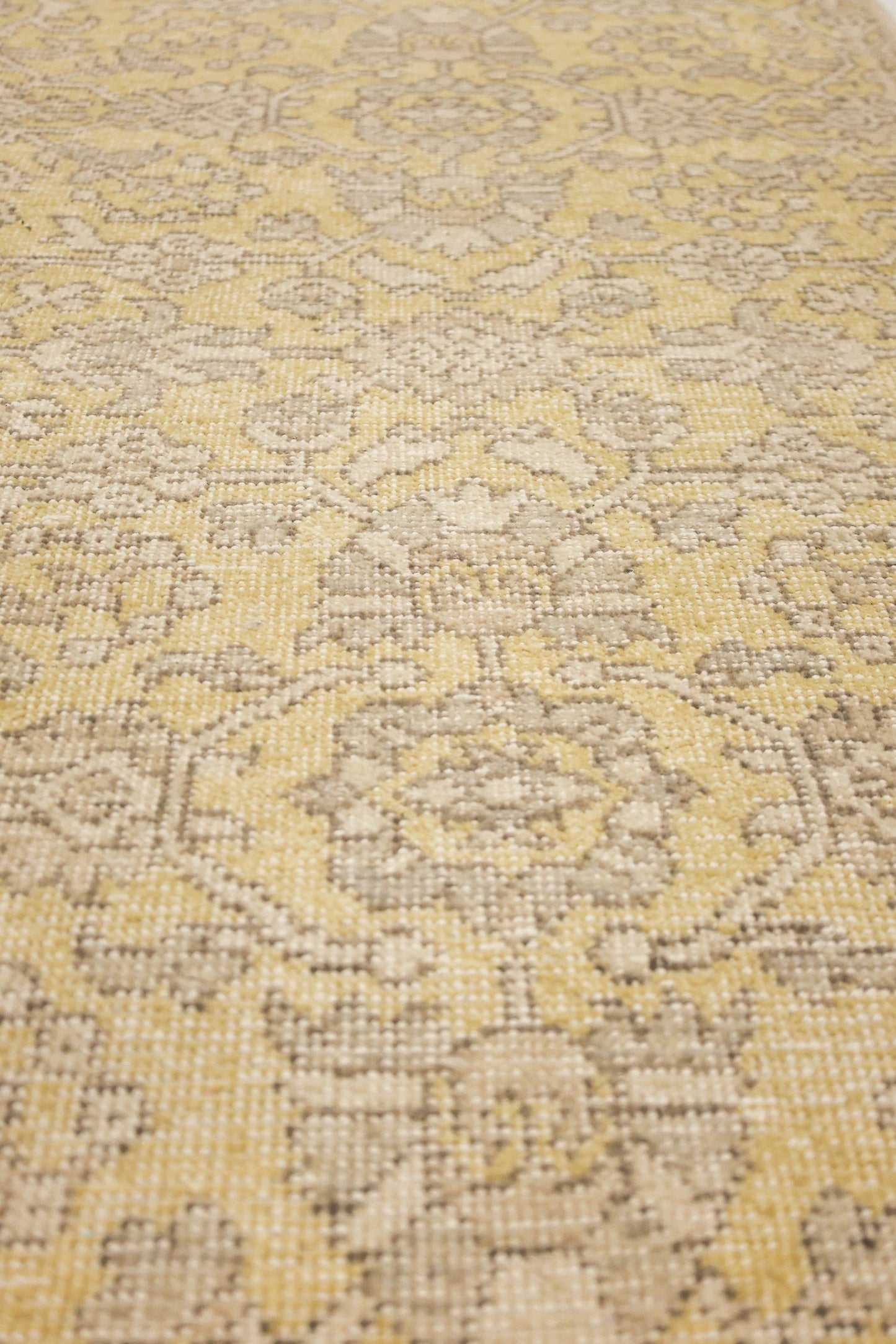 New Overdyed & Distressed Transitional Indian Tabriz 2' 7" X 12' 0" Yellow Rug