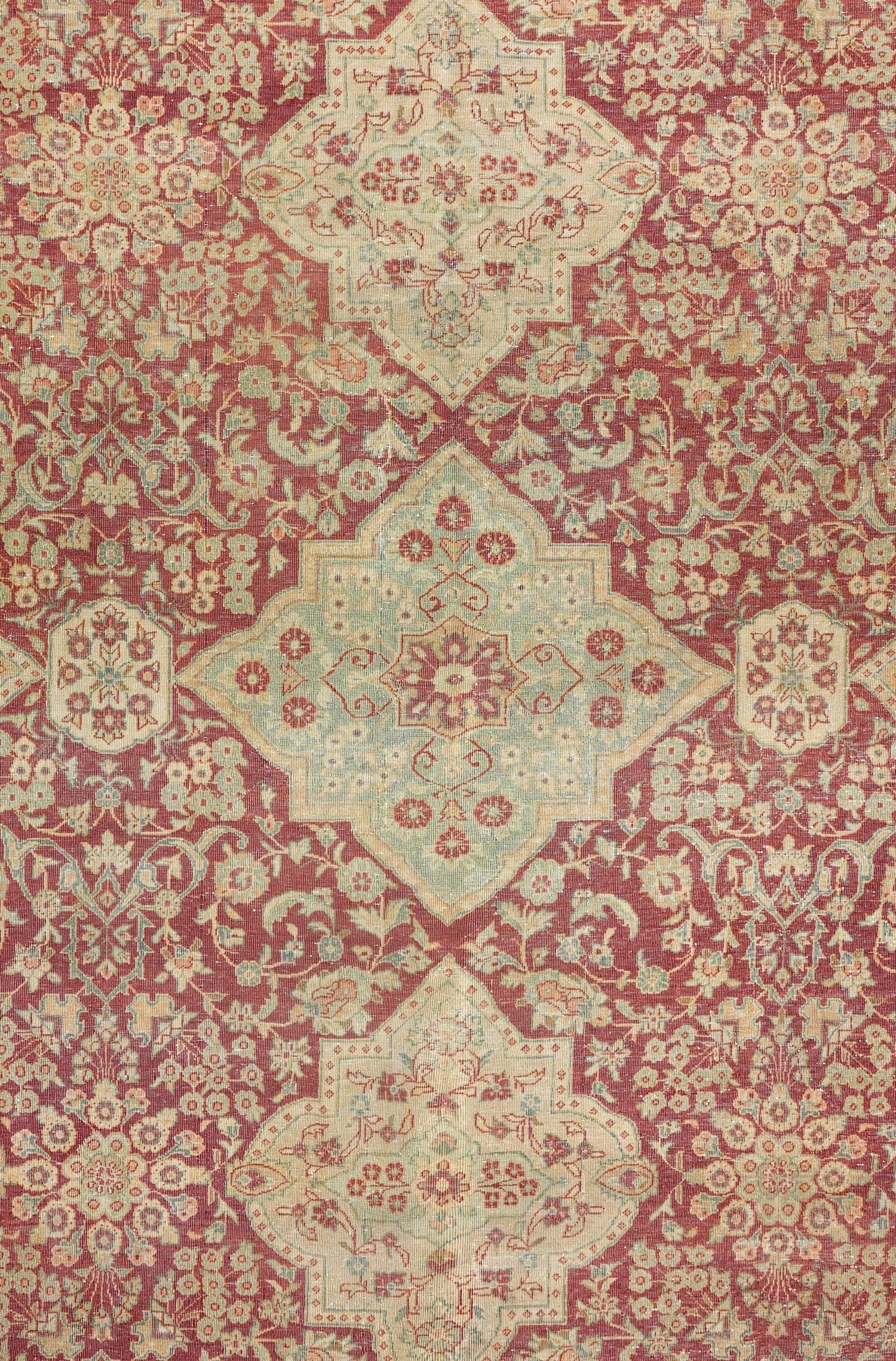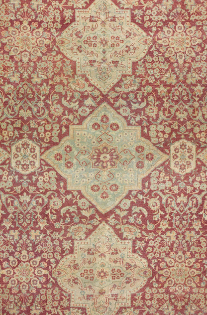 Vintage 1920 Overdyed & Distressed Transitional Persian Tabriz 8' 6" X 11' 3" Red Rug