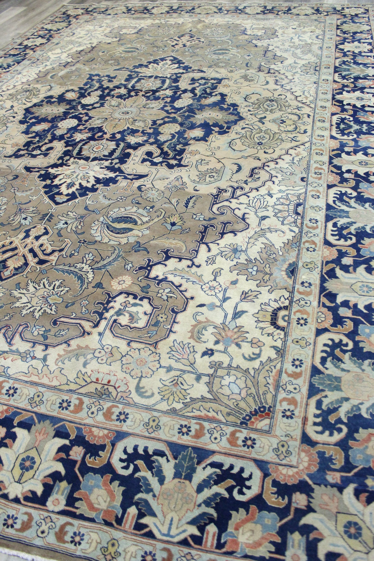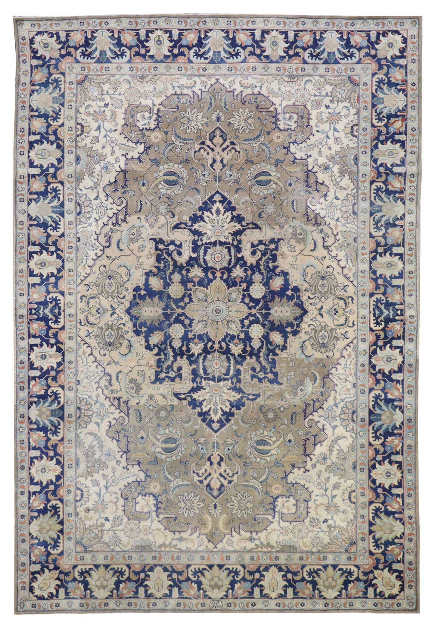 Make your house truly feel like home with our Vintage Tabriz Handwoven Tribal Rug (J68937). It's vintage (circa 1925) and tribal. It’s blue on khaki with navy accent colors. It’s a Nomadic Persian & Turkish style rug with a Tabriz motif. All things you gravitate towards when it comes to aesthetics and design in your space. Being a 9' 3" X 13' 7" rug of wool pile on a cotton foundation, you can rest assured that this piece will do more than just make the visual impact and create the vibe you want. It comes from the fine Persian tradition of handwoven rugmaking, meaning this rug will serve you well and look terrific for years. Add that extra special personal touch today with your own Vintage Tabriz Handwoven Tribal Rug.