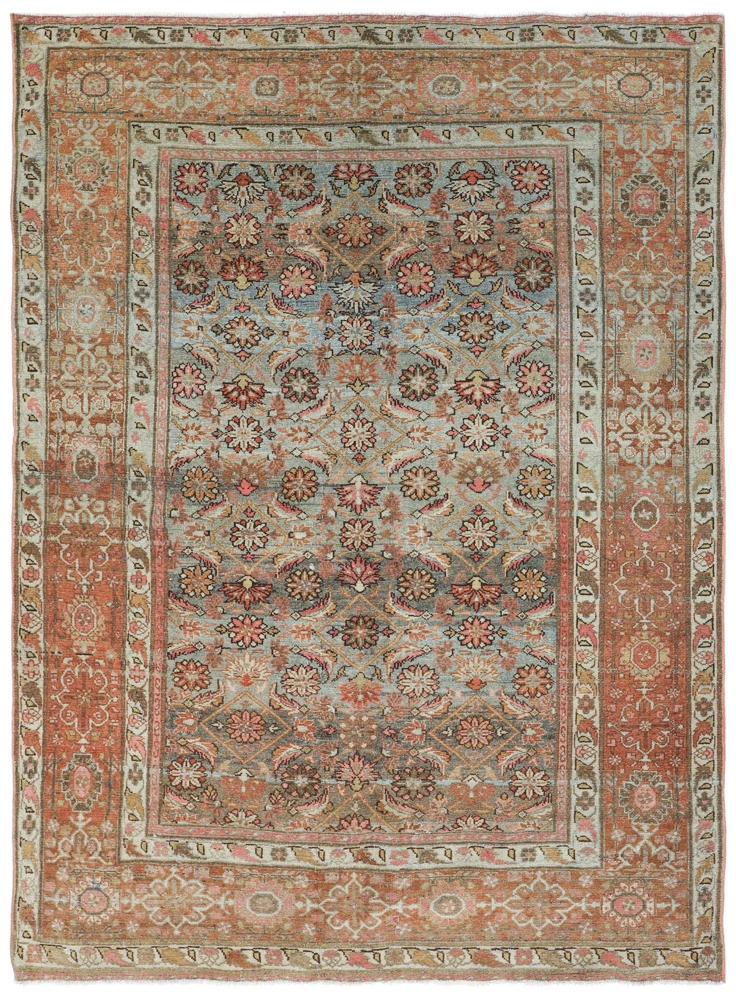 Vintage 1925 Nomadic Persian & Turkish Tribal Persian Tafresh 4' 8" X 6' 7" Blue Rug
